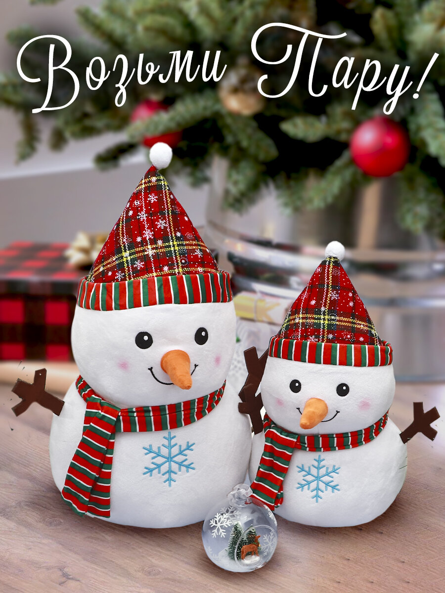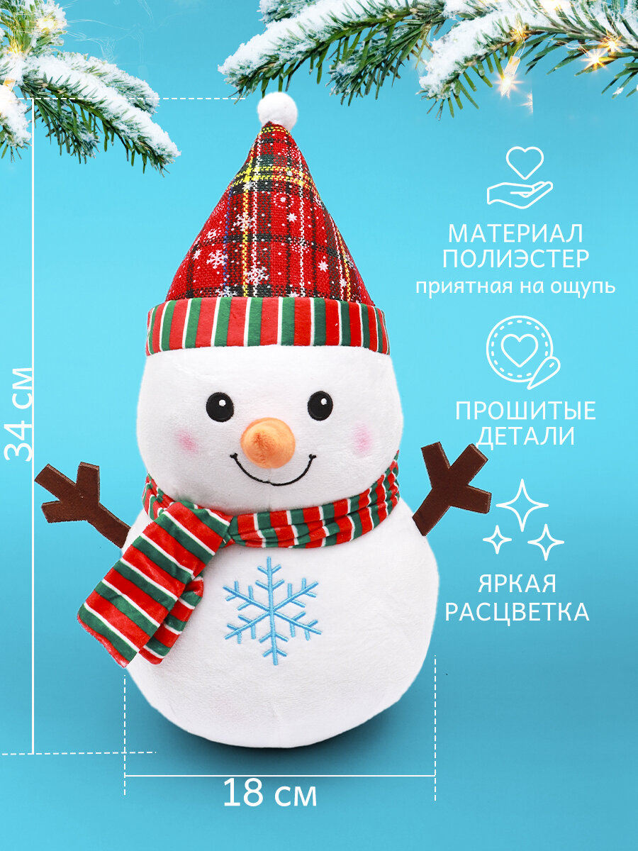 Купить Игрушка мягкая Новогодний Снеговик 34 см, подарок на новый год для мальчиков и девочек, символ года 2026 с доставкой по всей России.