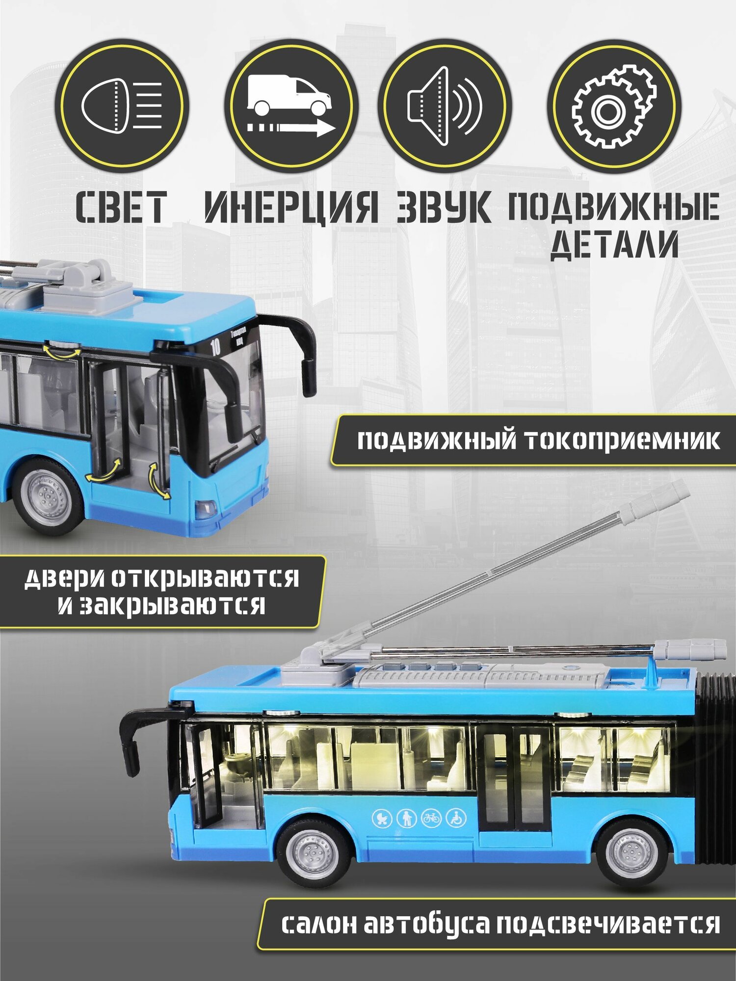 Игрушка-троллейбус Kid Rocks YK-2102, масштаб 1:16, инерционный механизм, звук, свет, голубой: сравнение цен, характеристики, фото, актуальное наличие и цены.