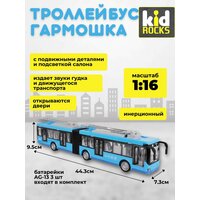 Купить Игрушка-троллейбус Kid Rocks YK-2102, масштаб 1:16, инерционный механизм, звук, свет, голубой с доставкой по всей России.