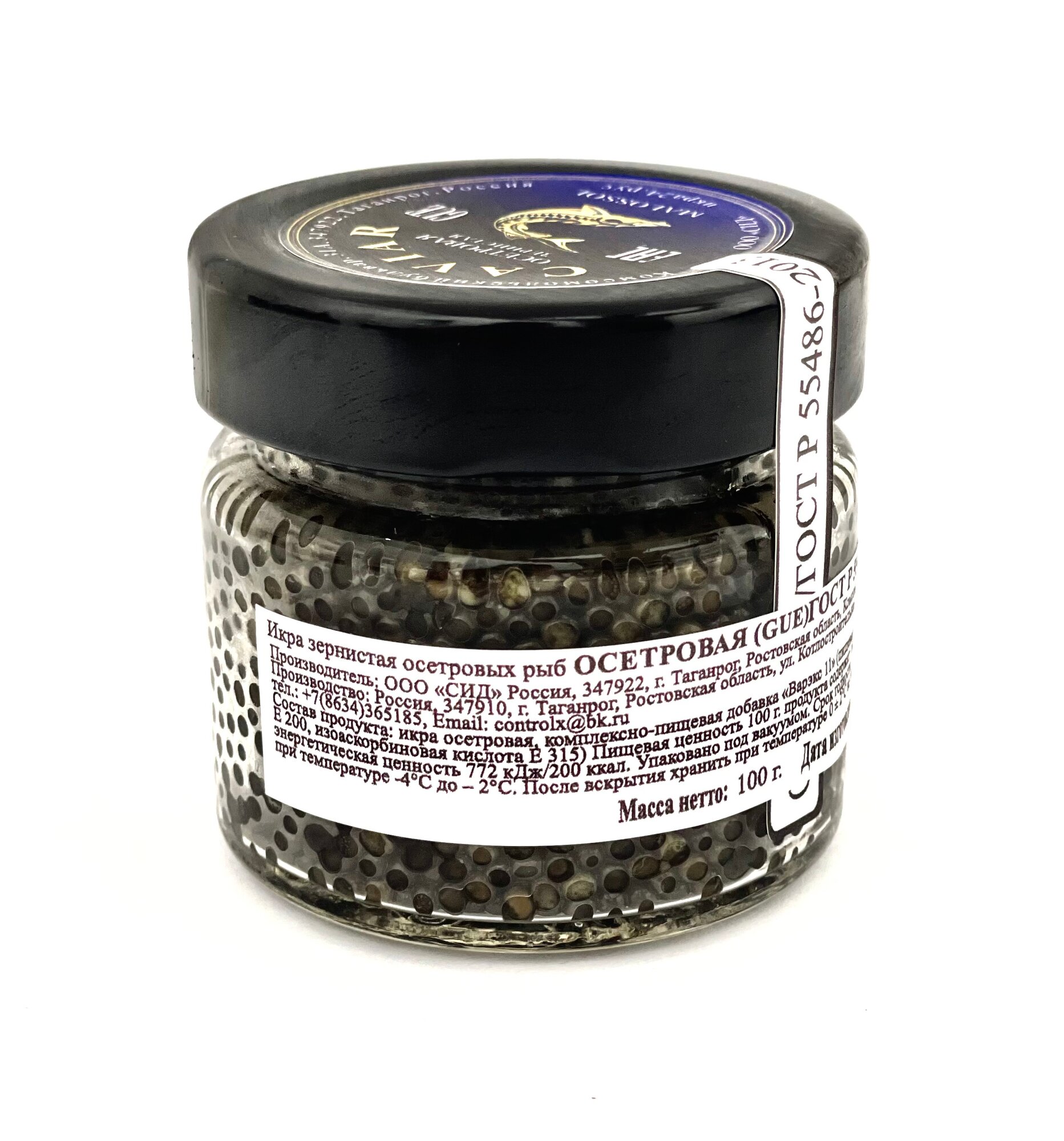 Икра осётра зернистая натуральная малосольная. - Диаметр икринок: От 2,0 до 3,0 мм. - Цвет: Тёмно-серый до чёрного. - Способ производства: Сухой засол свежей икры, не подвергавшейся замораживанию. - Упаковка: Стеклянные банки с вакуумированными крышками. - Место производства: г. Таганрог, Ростовская область. - Производитель: ООО «СИД». ▌ Преимущества продукта: - Соответствие российскому государственному стандарту качества ГОСТ Р 55486-2013. - Натуральность и экологичность (не используется замороженное сырьё). - Полезность для здоровья (способствует повышению уровня гемоглобина). - Сертифицирован, прошёл ветеринарные проверки и зарегистрирован в системе маркировки «Честный знак». Представленная продукция обладает высоким качеством, соответствует требованиям стандартов и является экологически чистым продуктом, полезным для всех категорий потребителей.