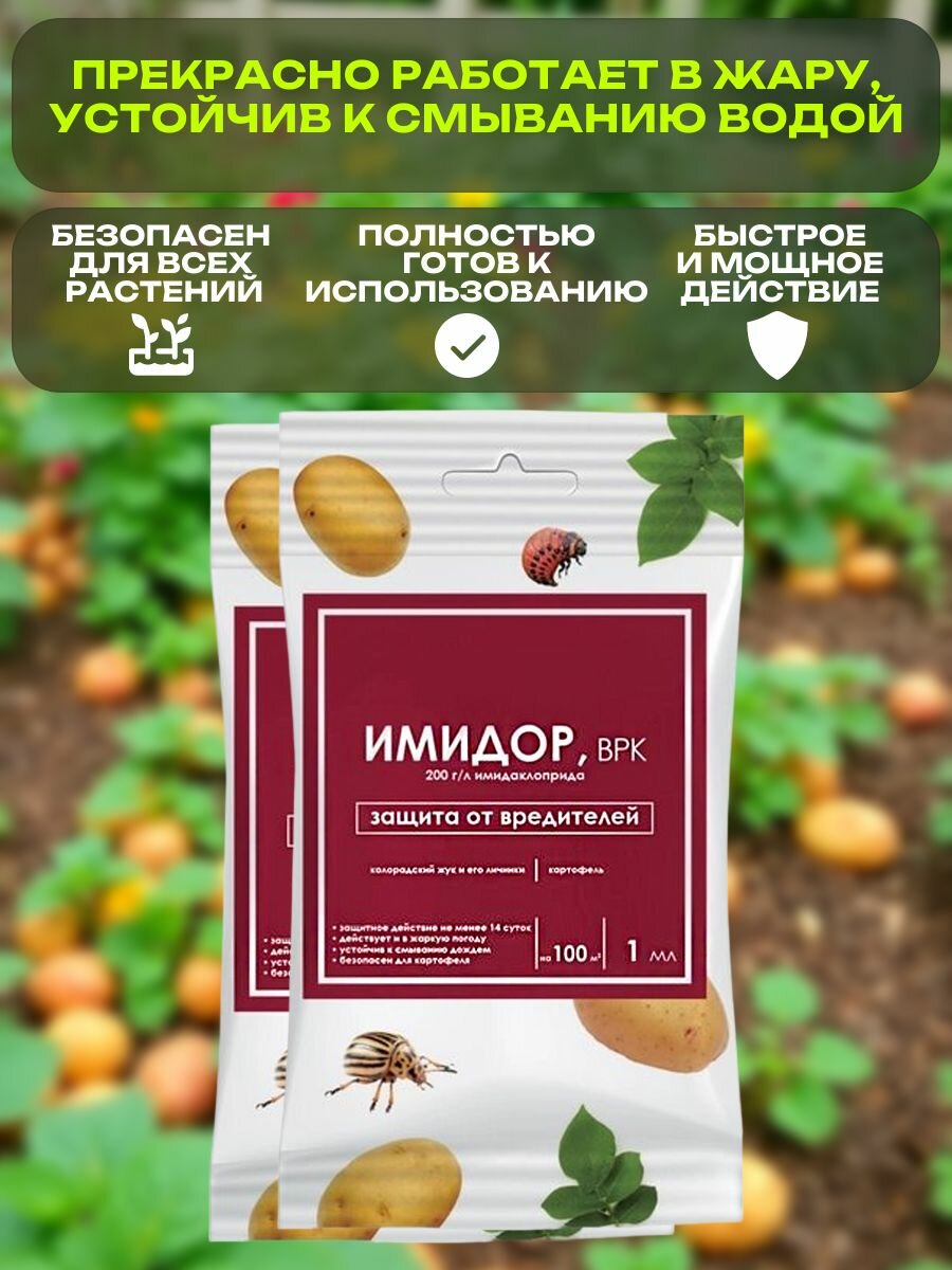 Имидор для картофеля, 2 ампулы по 1 мл. Средство от колорадского жука и его личинок. Уничтожает всю популяцию за 24 часа, долгое время сохраняет эффективность: сравнение цен, характеристики, фото, актуальное наличие и цены.