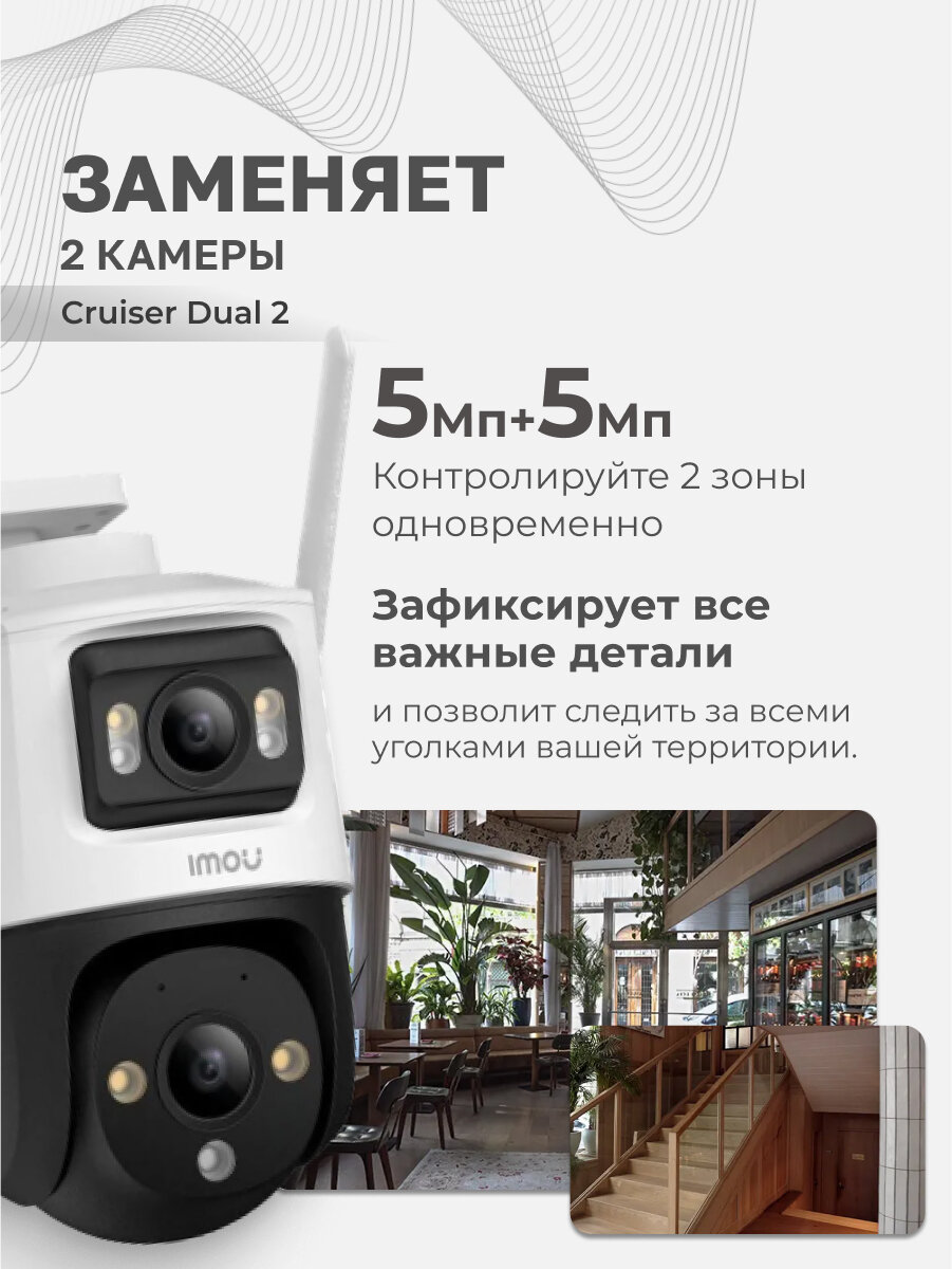 IMOU Wi-Fi камера с двумя объективами по 5Мп Cruiser Dual 2 IPC-S7XEP-10M0WED-0360B-imou: сравнение цен, характеристики, фото, актуальное наличие и цены.
