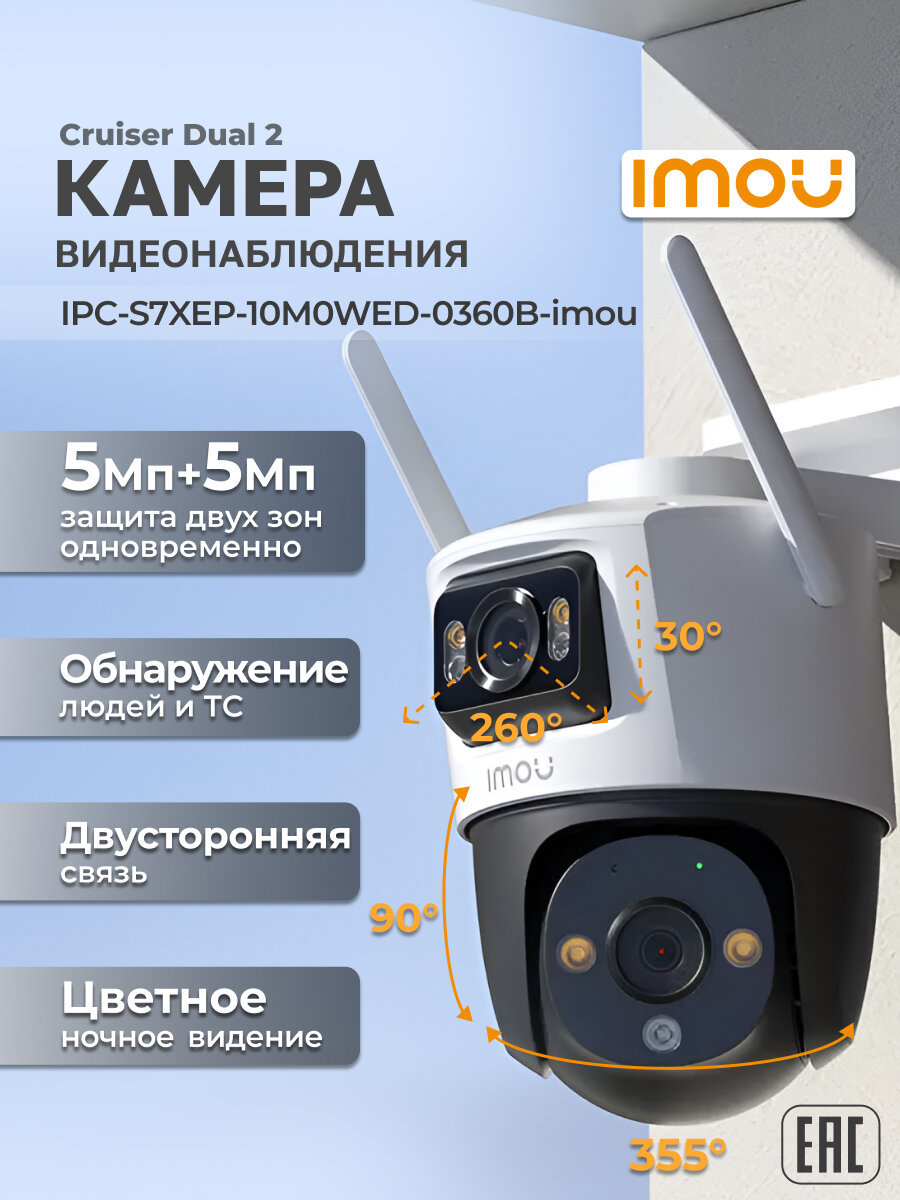 Купить IMOU Wi-Fi камера с двумя объективами по 5Мп Cruiser Dual 2 IPC-S7XEP-10M0WED-0360B-imou с доставкой по всей России.