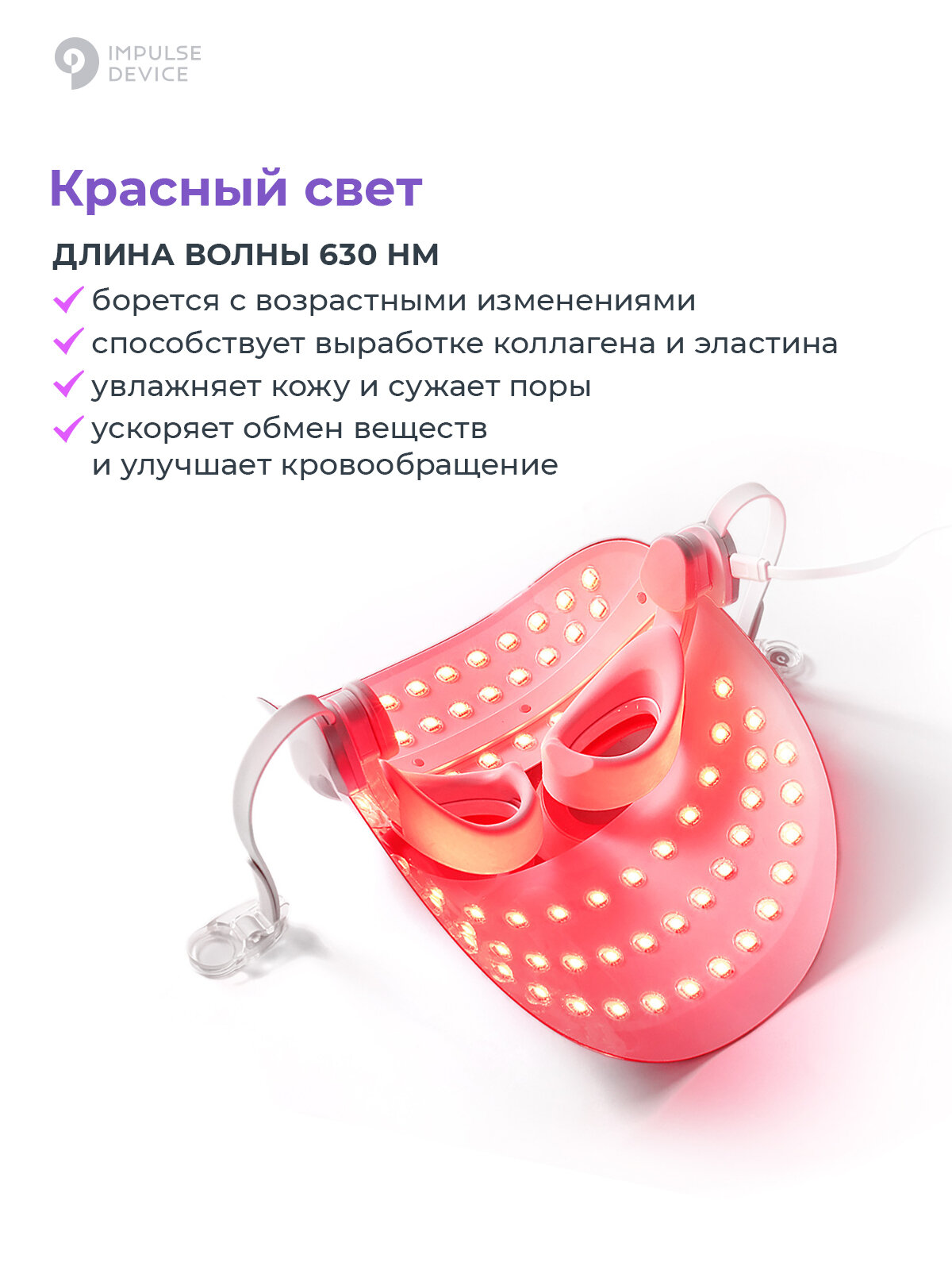 Чем больше у светодиодной маски для лица режимов, тем шире ее возможности. У Impulse Derma Pro 7 цветов: