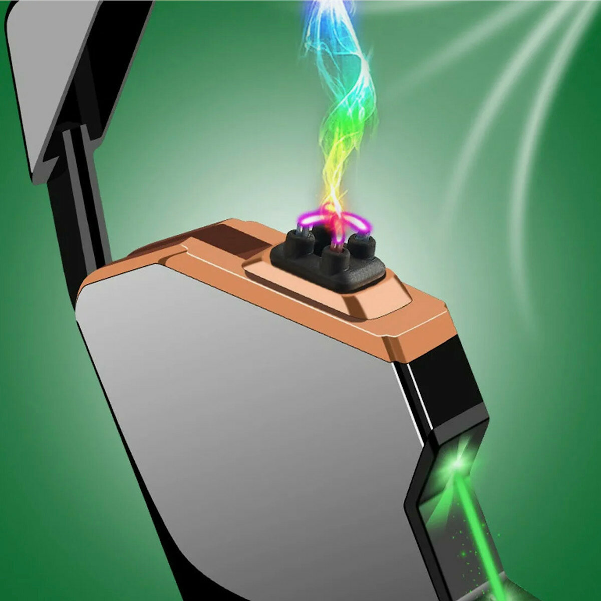 Двойная электрическая дуга, поджигающая всё! Активация электроимпульса зеленым лазерным сенсором LED индикатор с отображением уровня заряда (0-25 - 25-50 - 50-75 - 75-100 %) Зарядка от любого USB порта Модный, ультрасовременный дизайн Прекрасный подарок любому мужчине! Можно сразу дарить – поставляется в подарочной коробке