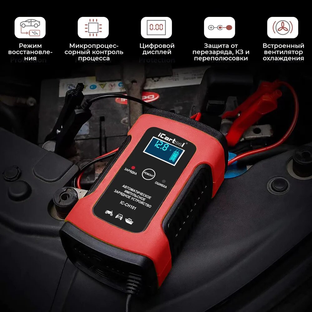 Купить ICarTool Импульсное зарядное устройство 12В с функцией восстановления IC-CH101 с доставкой по всей России.