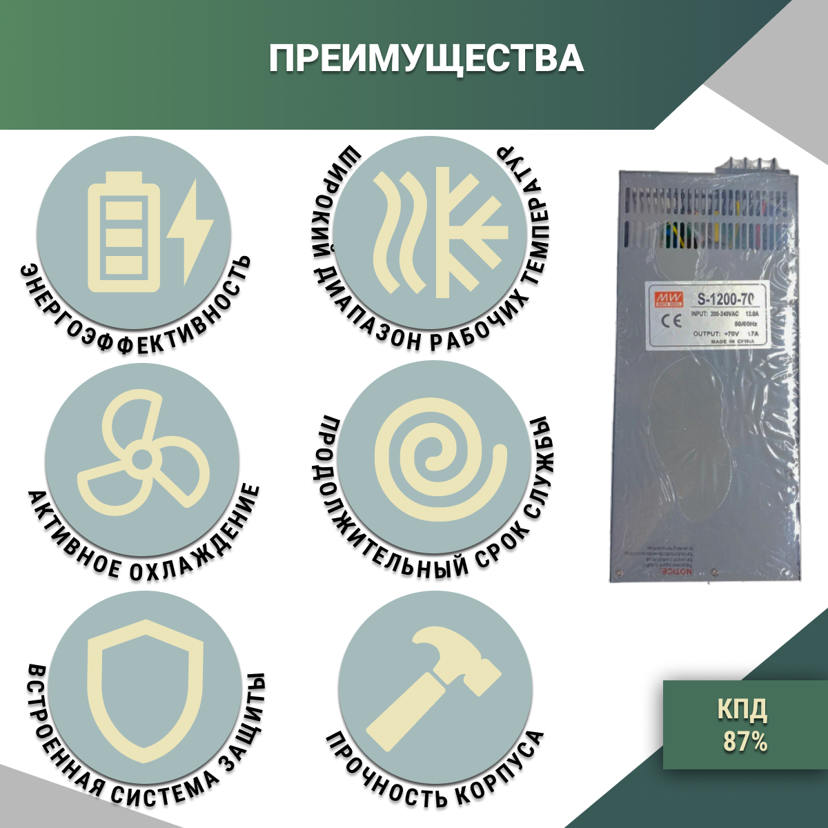 Импульсный источник питания S-1200-70 с защитой от перегрузки (70 В, 17 А)