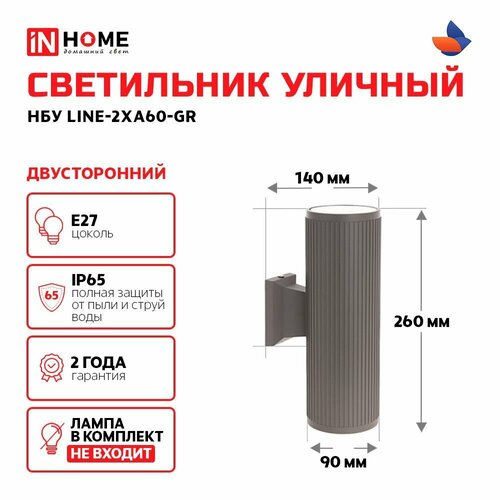 Купить IN HOME Светильник уличный НБУ LINE-2хA60-GR двусторонний под лампу 2хA60 E27 230B серый серии CITY IP65 с доставкой по всей России. IN HOME Светильник уличный НБУ LINE-2хA60-GR двусторонний под лампу 2хA60 E27 230B серый серии CITY IP65: сравнение цен, характеристики, фото, актуальное наличие и цены.