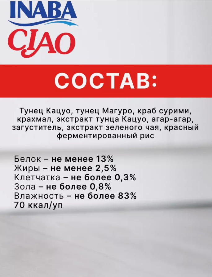Влажный корм для кошек Inaba Kinnodashi, с тунцом Кацуо, тунцом Магуро и крабом сурими, паучи, 24 шт х 60 гр: сравнение цен, характеристики, фото, актуальное наличие и цены.
