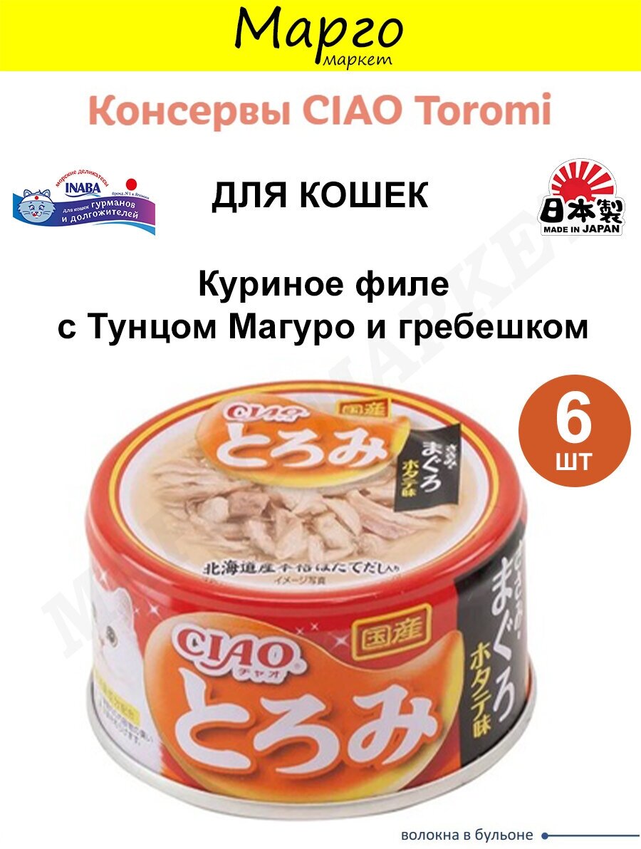 Купить INABA Ciao Toromi 6 шт по 80 г влажный корм для кошек куриное филе, тунец магуро и кальмар в бульоне с доставкой по всей России. INABA Ciao Toromi 6 шт по 80 г влажный корм для кошек куриное филе, тунец магуро и кальмар в бульоне: сравнение цен, характеристики, фото, актуальное наличие и цены.