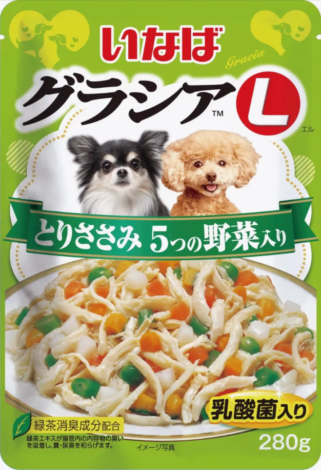 Суперпремиальный полнорационный влажный корм для собак Gracia L от японского производителя Inaba приготовлен на основе нежного куриного филе и 5 видов овощей. Корм имеет высокопитательный сбалансированный состав, а также обогащен лактобактериями, витаминами и минералами. Корма и лакомства Inaba отличаются высоким качеством и неповторимым вкусом, ведь они изготавливаются на основе отборных традиционных японских ингредиентов! Во все продукты добавлен экстракт зеленого чая, который, благодаря содержанию катехина, обладает нейтрализующим действием на запах содержимого кишечника. Корм не содержит искусственных добавок, красителей и консервантов.