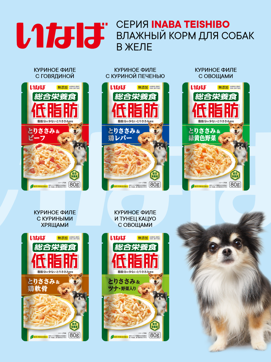 Паучи Инаба Тэисибо для собак Куриное филе с куриной печенью в желе (цена за упаковку)