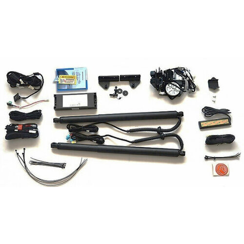 2 электрических подъемника, электрическая тяга замка, CAN модуль для подключения к цифровой сети автомобиля, штатная кнопка управления для установки в на дверь багажника, а также все провода и арматура для установки.