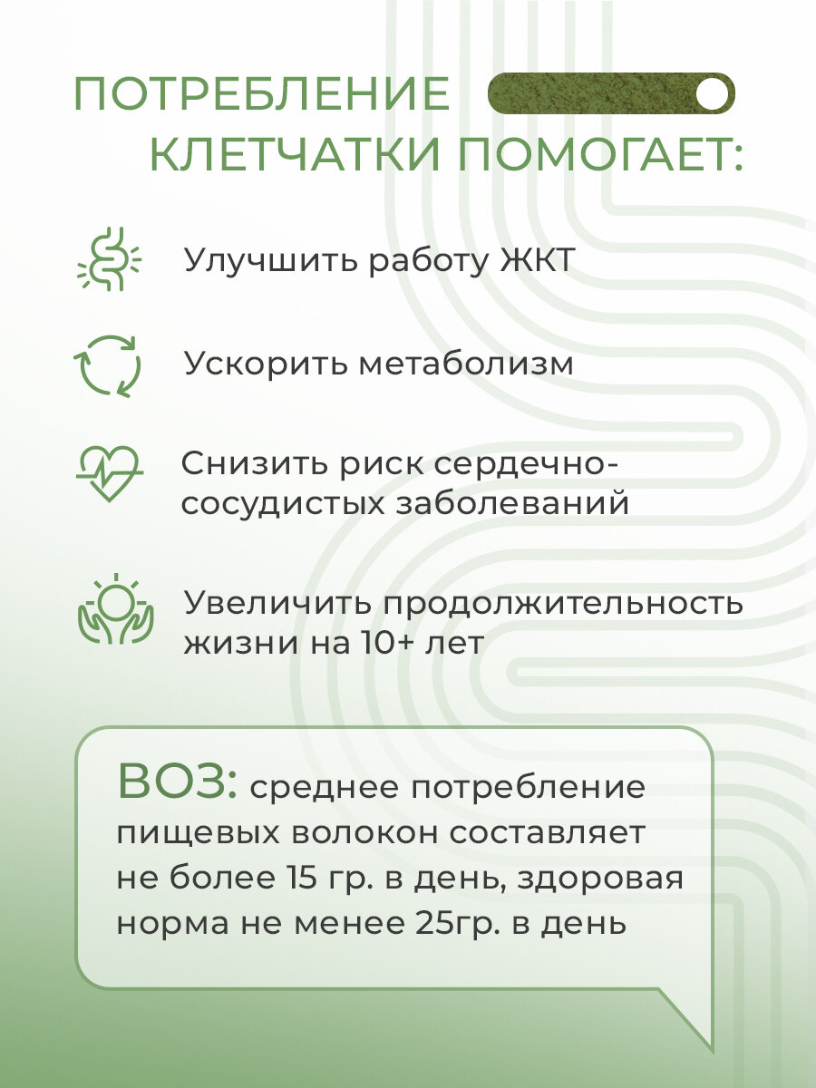 Клетчатка или пищевые волокна нужны нам на постоянной основе для здоровья и правильной работы кишечника. Клетчатка помогает организму: