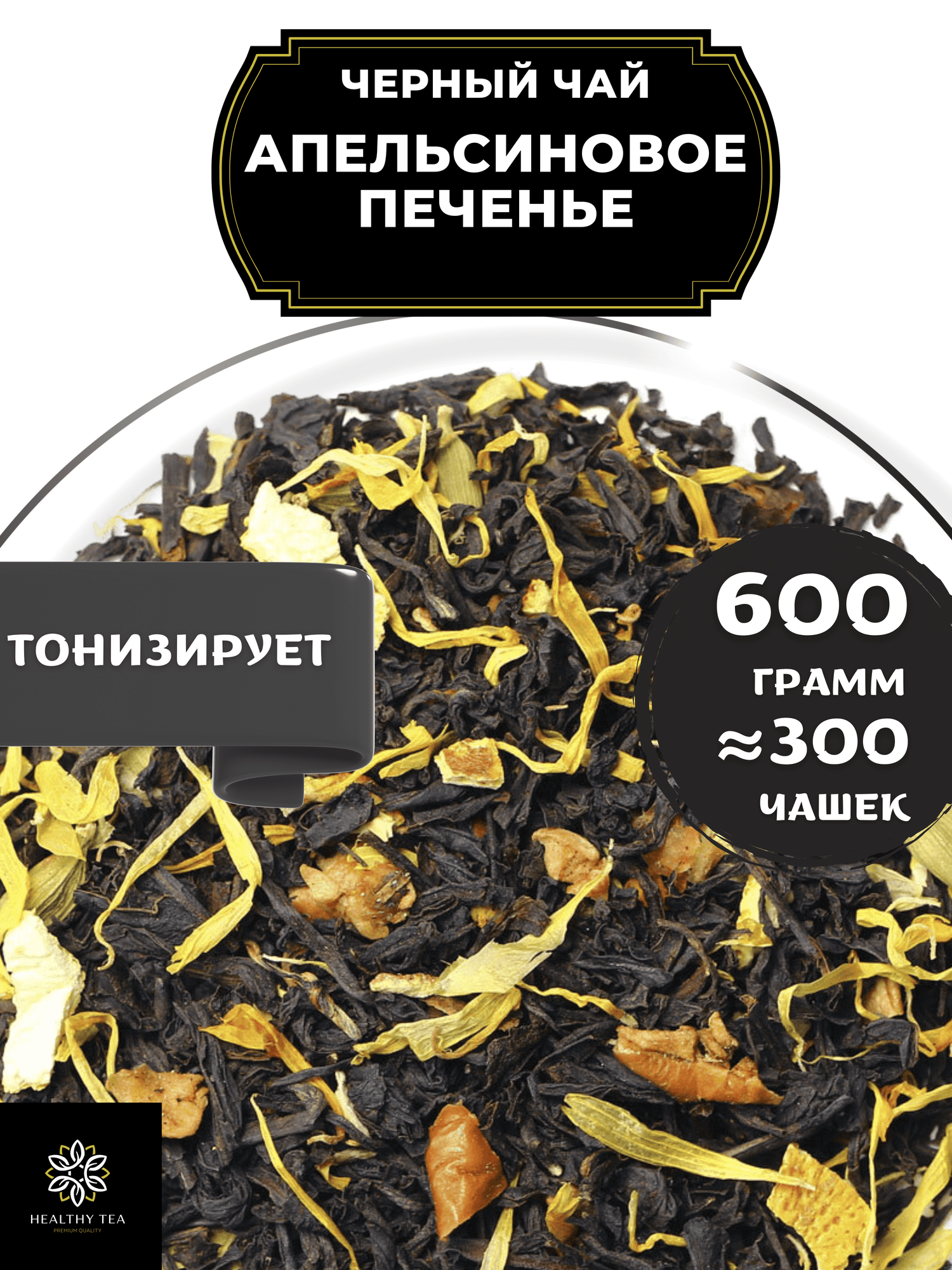 Индийский Черный чай с кардамоном, яблоком и корицей Апельсиновое печенье от Полезный чай / HEALTHY TEA, 600 гр