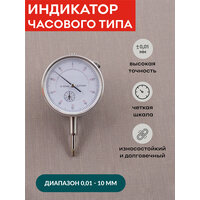 Индикатор часового типа ИЧ-10 (0.01 мм) класс-1 ГОСТ 577-68. Используются для индикации результата замера, совершенного абсолютным или относительным методом. Он позволяет определить размер отклонения от заданной конфигурации, взаимного расположения поверхностей или сравнить с эталонной мерой.