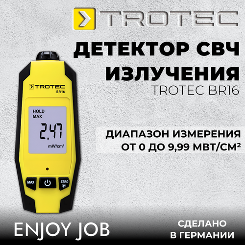 - Trotec BR16 обнаруживает вредное микроволновое излучение в диапазоне измерения от 0 до 9,99 мВт/см² (частота 2,45 ГГц) )