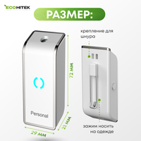 Персональный очиститель воздуха Personal NEW с инновационной технологией ионизации обеспечивает защиту от вирусов, бактерий, пыли и аллергенов. Компактный мини прибор обеззараживатель бренда EcoHiTek удобно одевается на шею и очищает воздух вокруг вас.
