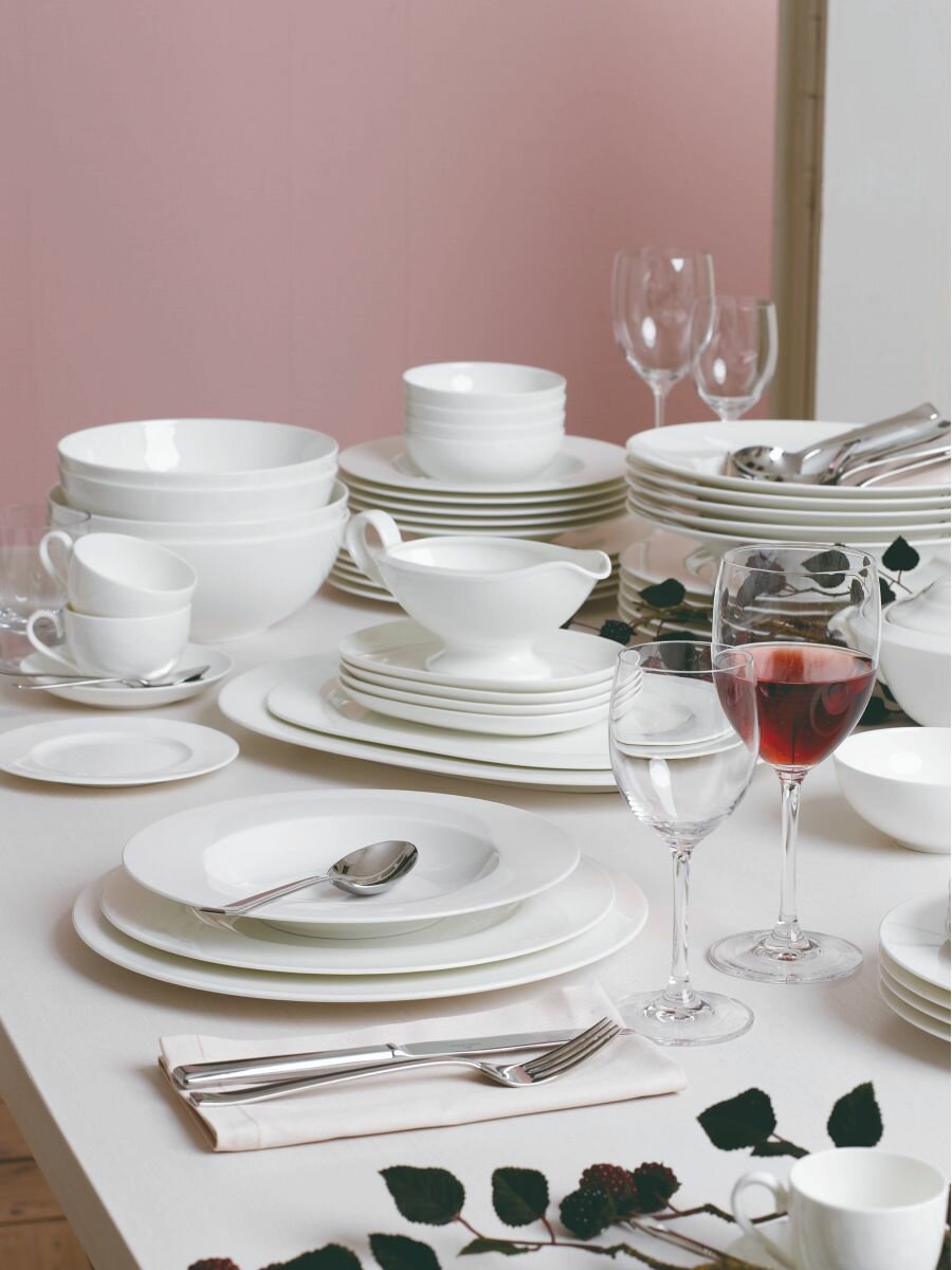 Благородный костяной фарфор с его белизной и полупрозрачностью мягко рассеивает свет, подчеркивая свежесть и текстуру ингредиентов. Классическая круглая форма с четкими линиями и лаконичным силуэтом отражает вневременную эстетику коллекции, гармонично сочетаясь с любым стилем сервировки.