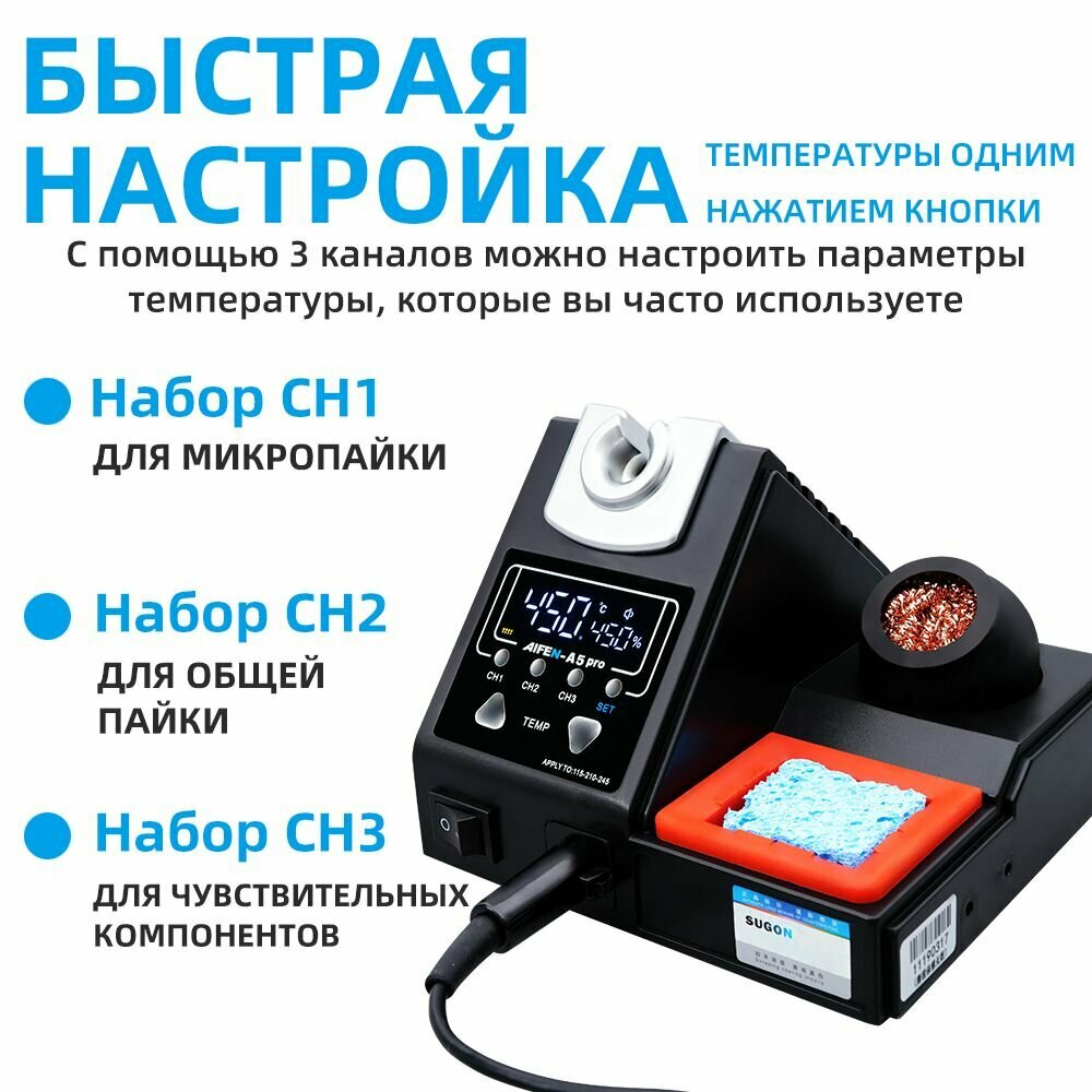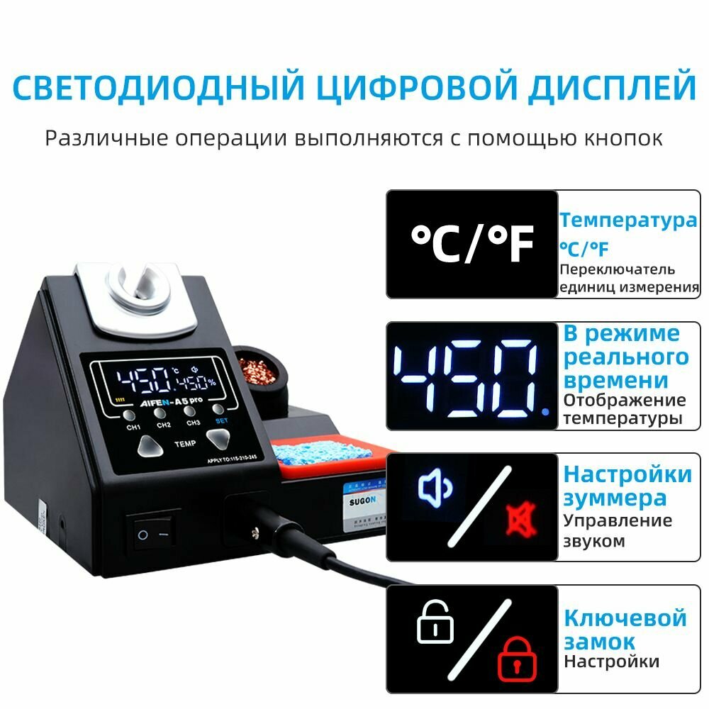 Купить Паяльная станция AIFEN-A5 pro совместима с ручками T115/T210/T245 с доставкой по всей России. Паяльная станция AIFEN-A5 pro совместима с ручками T115/T210/T245: сравнение цен, характеристики, фото, актуальное наличие и цены.
