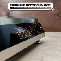 Удобный электронный дисплей с регулировкой уровня мощности упрощает настройку плиты, позволяя легко регулировать мощность одним касанием и с помощью поворотной ручки для дополнительной точности настройки.