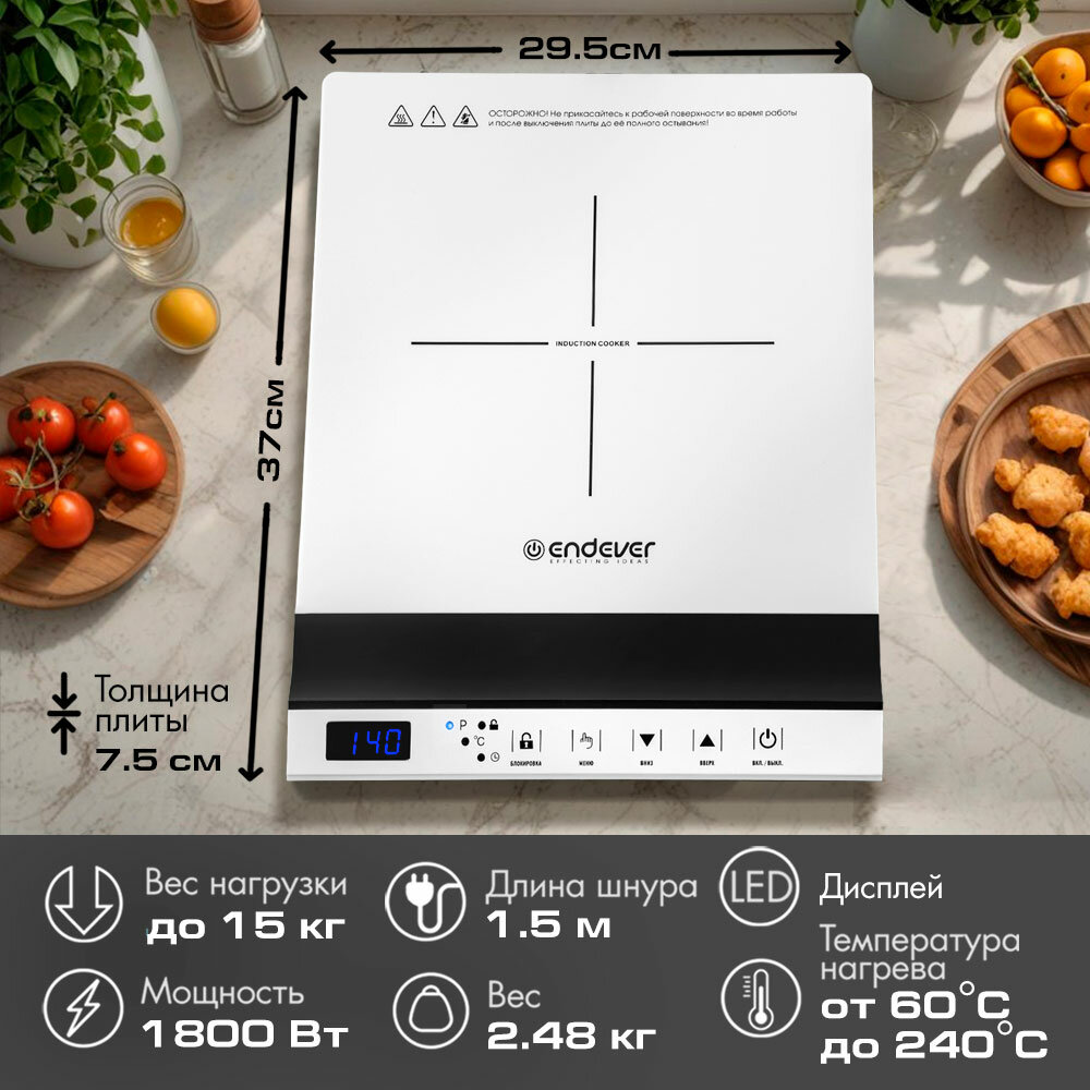 Индукционная плитка настольная ENDEVER Skyline IP-68 / 1800 Вт / 10 уровней мощности