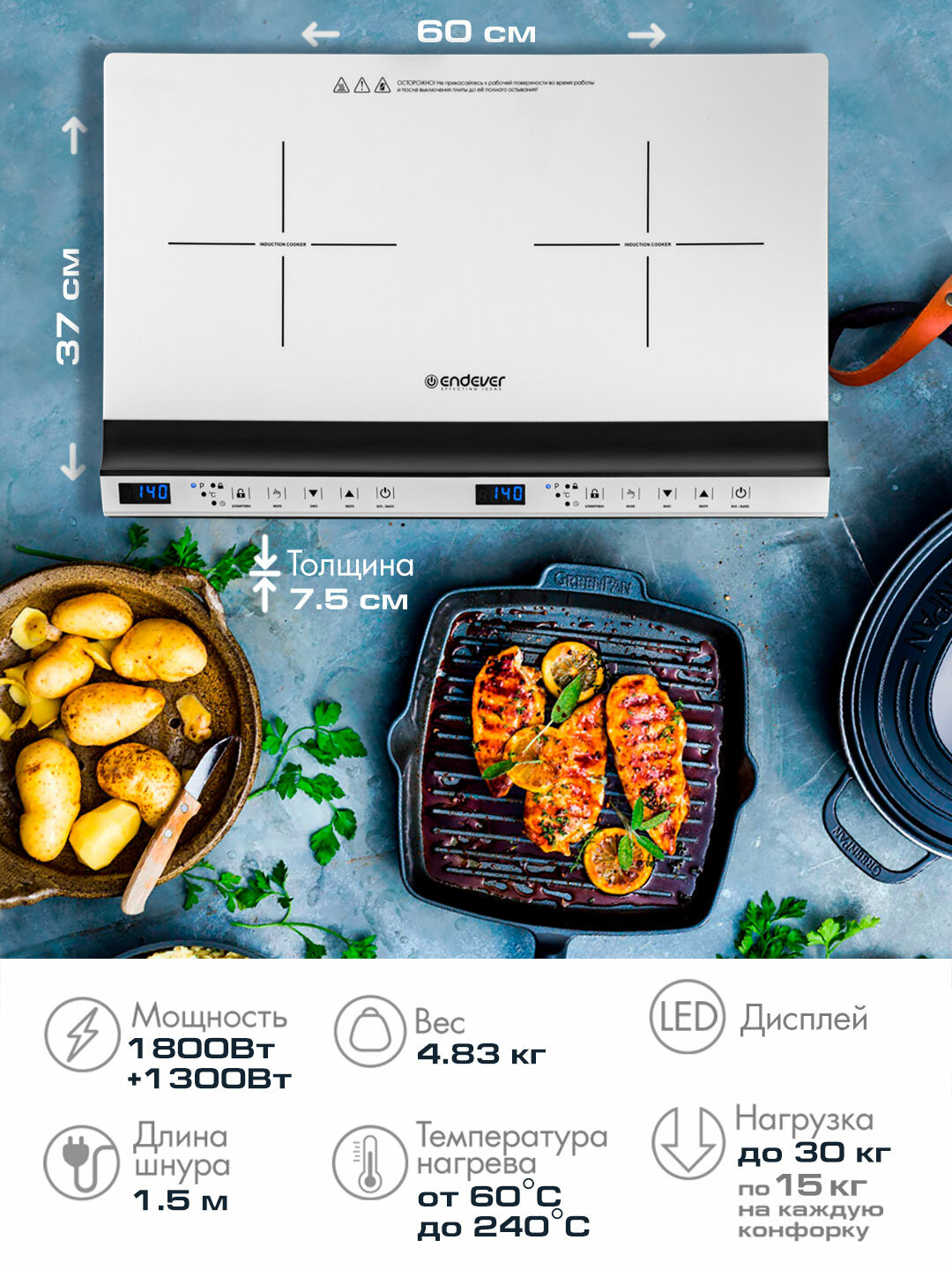 Индукционная плитка настольная ENDEVER Skyline IP-69 / 1800+1300 Вт / 10 уровней мощности: сравнение цен, характеристики, фото, актуальное наличие и цены.