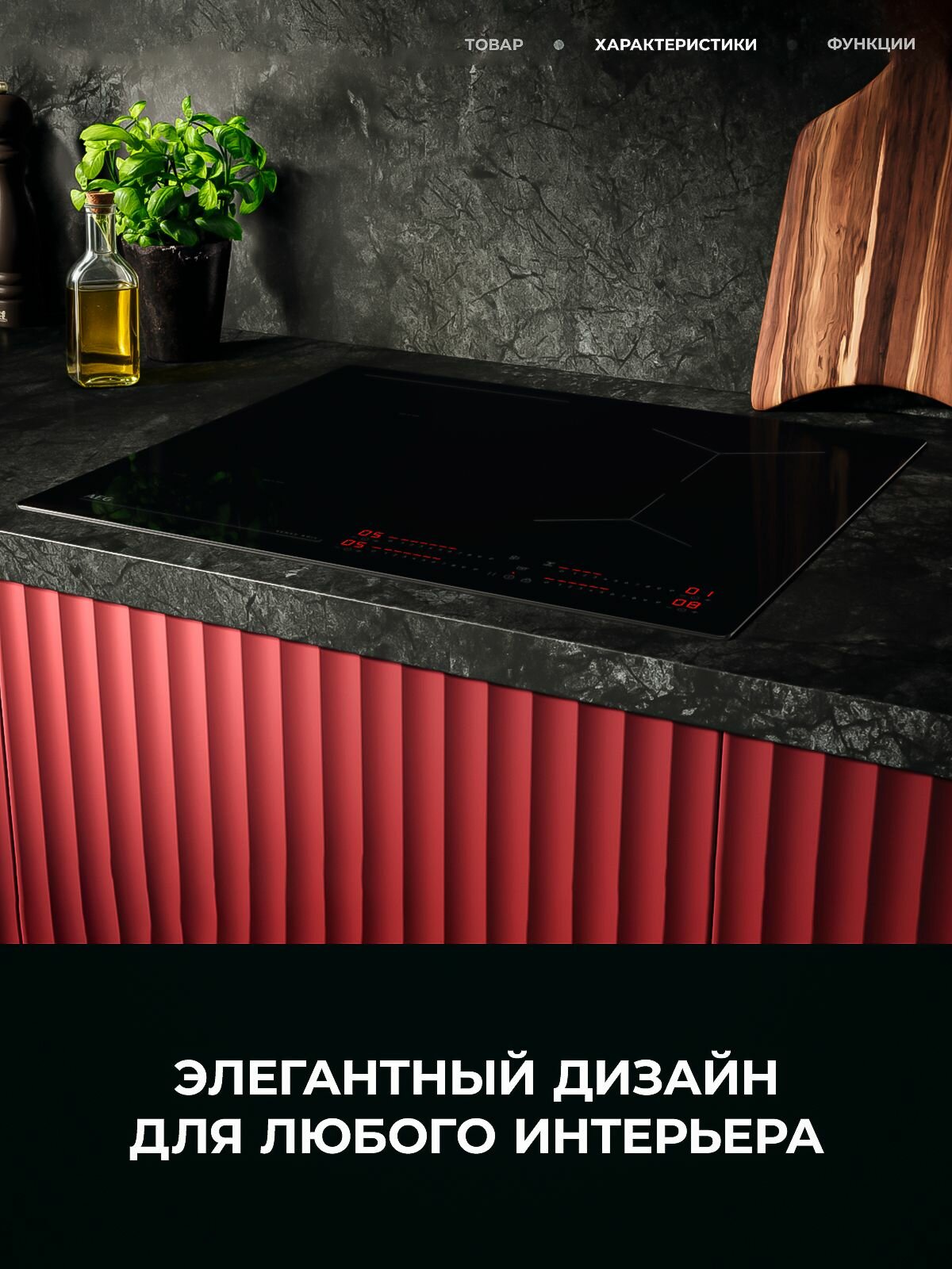 - Bridge (Объединение зон): Позволяет использовать две левые зоны как одну большую для крупной посуды.