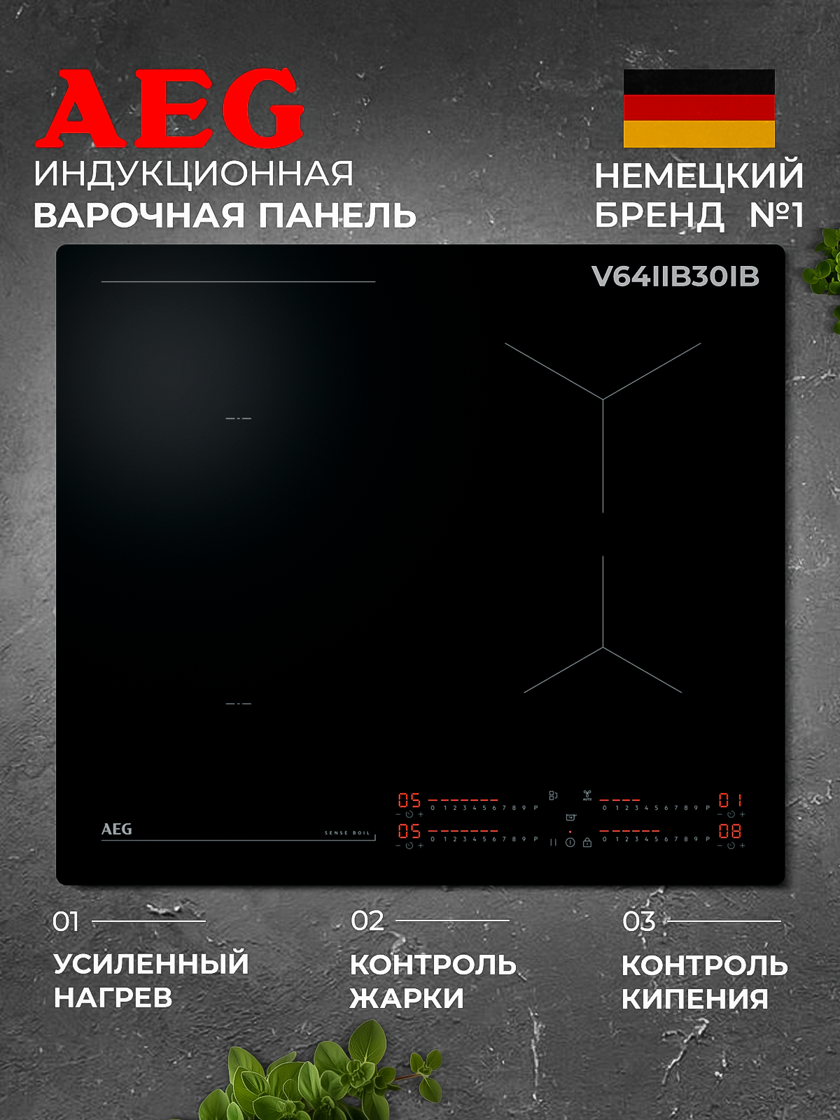 Индукционная варочная панель AEG V64IIB30IB серия 8000 сочетает высокую мощность, интуитивное управление и умные функции для комфортного приготовления пищи.