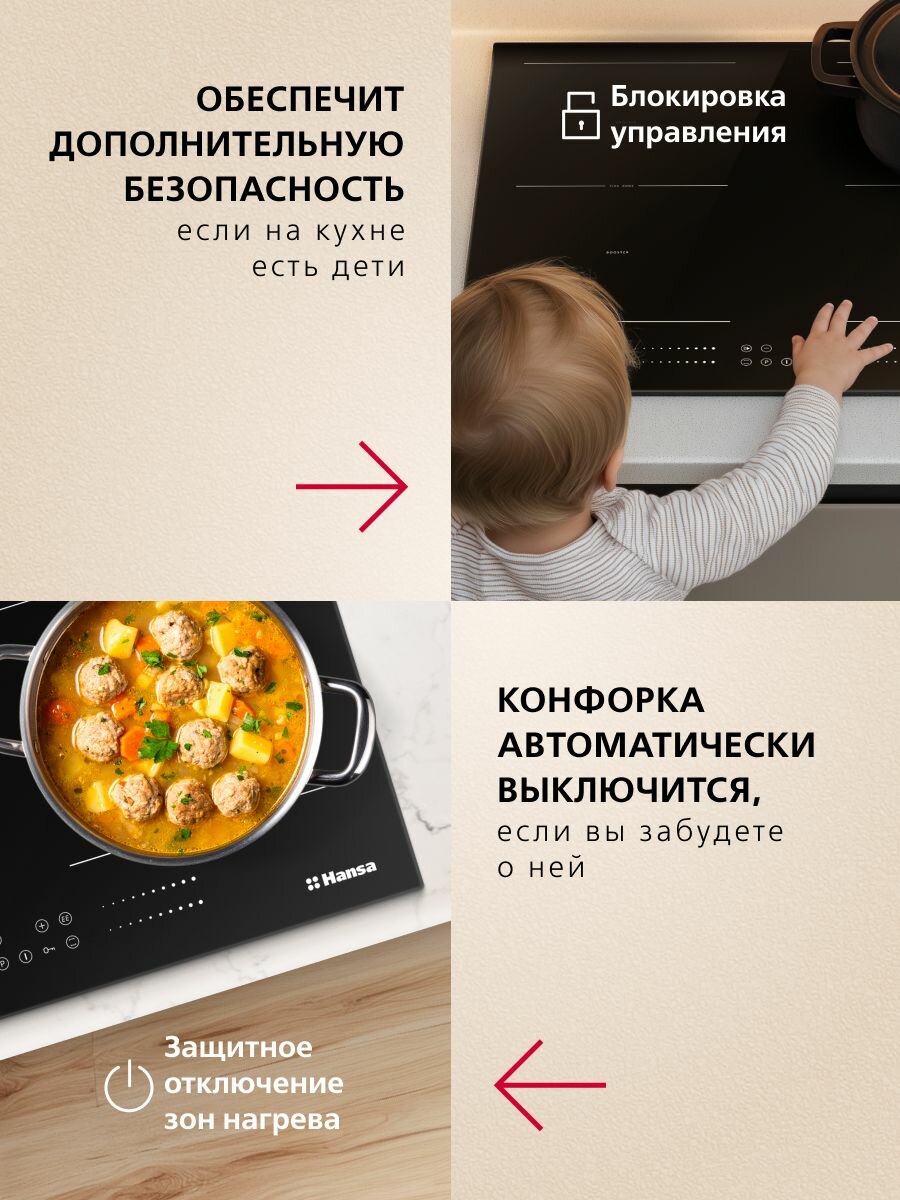 Купить Индукционная варочная панель Hansa Pro Chef BHI68810, 7200 Вт, таймер, блокировка от детей, функция Booster, автоотключение, черный с доставкой по всей России.