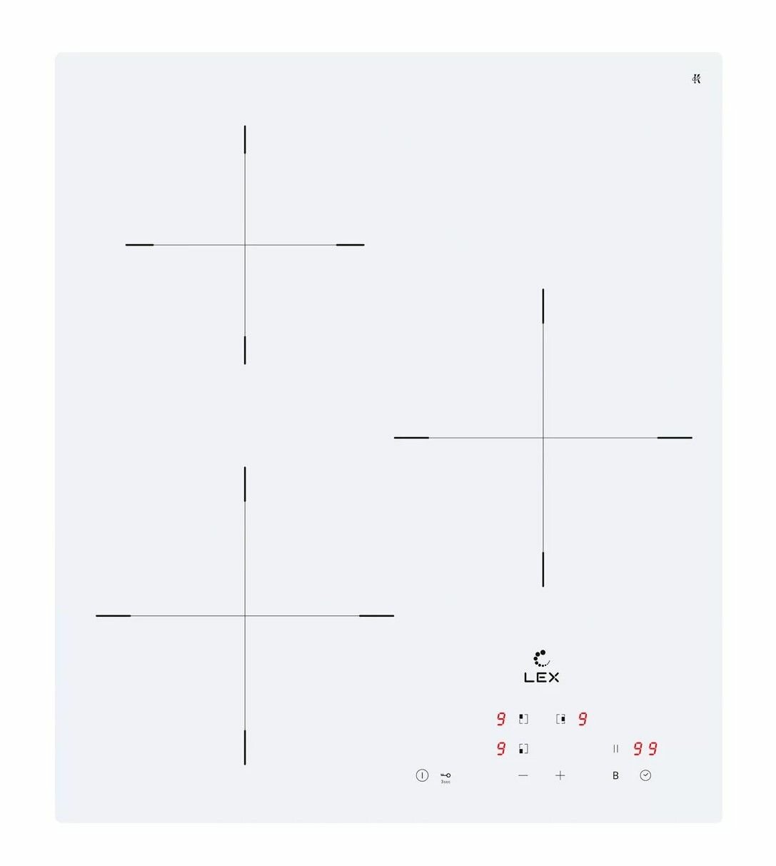 Индукционная варочная поверхность, встраиваемая, LEX EVI 430A IV, трехконфорочная, сенсорное управление.
