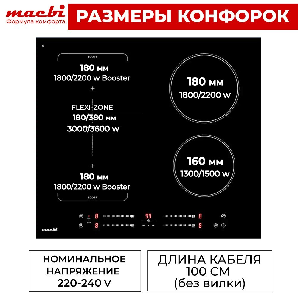 Индукционная варочная панель MACBI 4 конфорки, с функцией бустер, зоной объединения: сравнение цен, характеристики, фото, актуальное наличие и цены.
