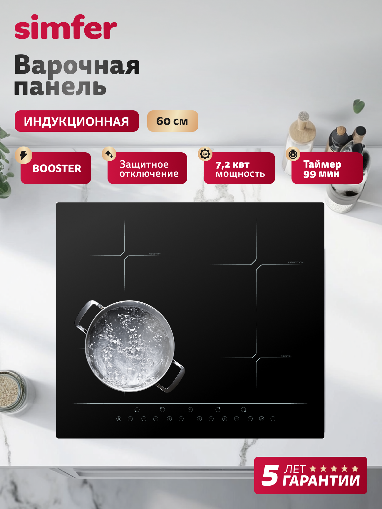 Купить Индукционная варочная панель Simfer 60см, 9 режимов, блокировка, защитное отключение, функция Booster, 5 ЛЕТ гарантия с доставкой по всей России. Индукционная варочная панель Simfer 60см, 9 режимов, блокировка, защитное отключение, функция Booster, 5 ЛЕТ гарантия: сравнение цен, характеристики, фото, актуальное наличие и цены.