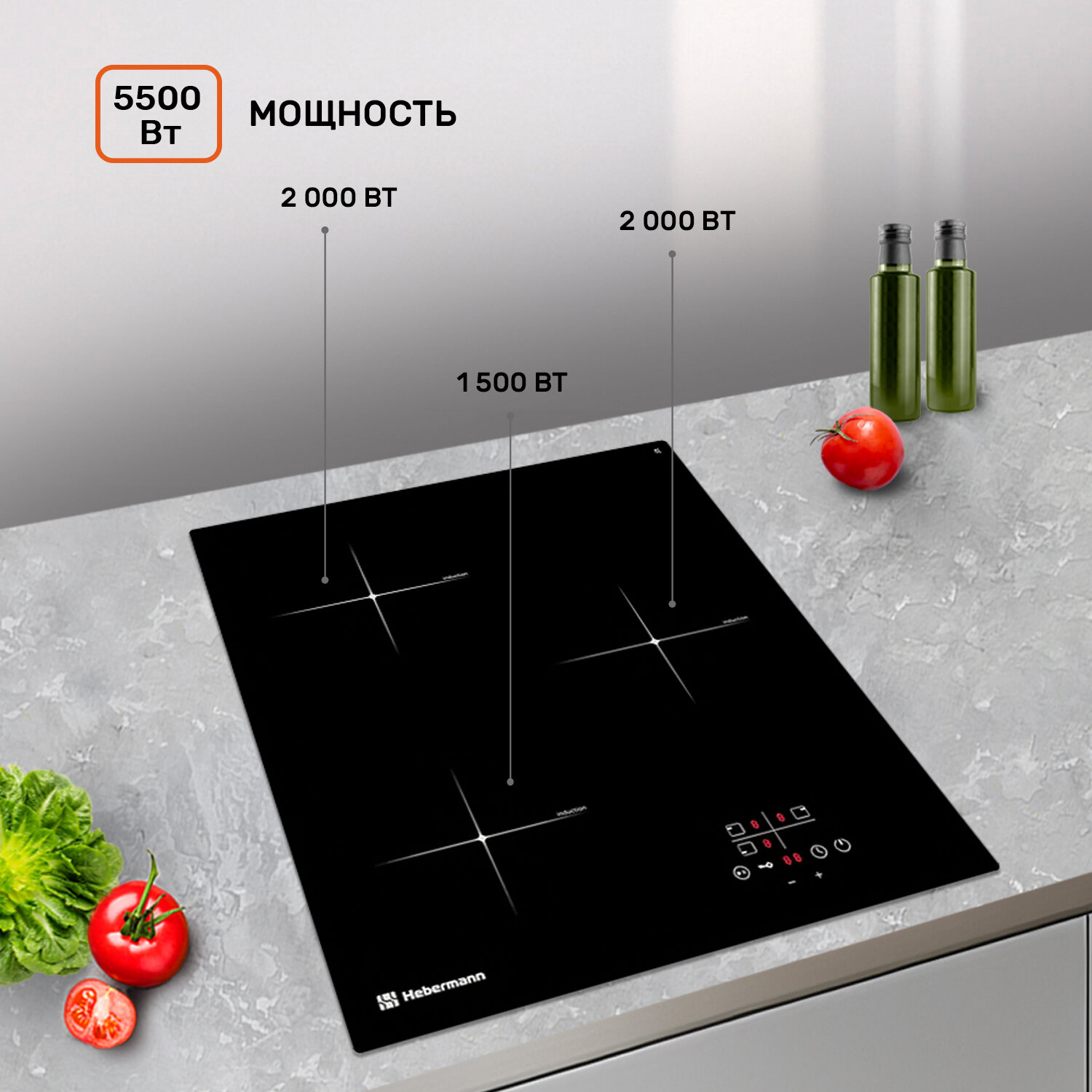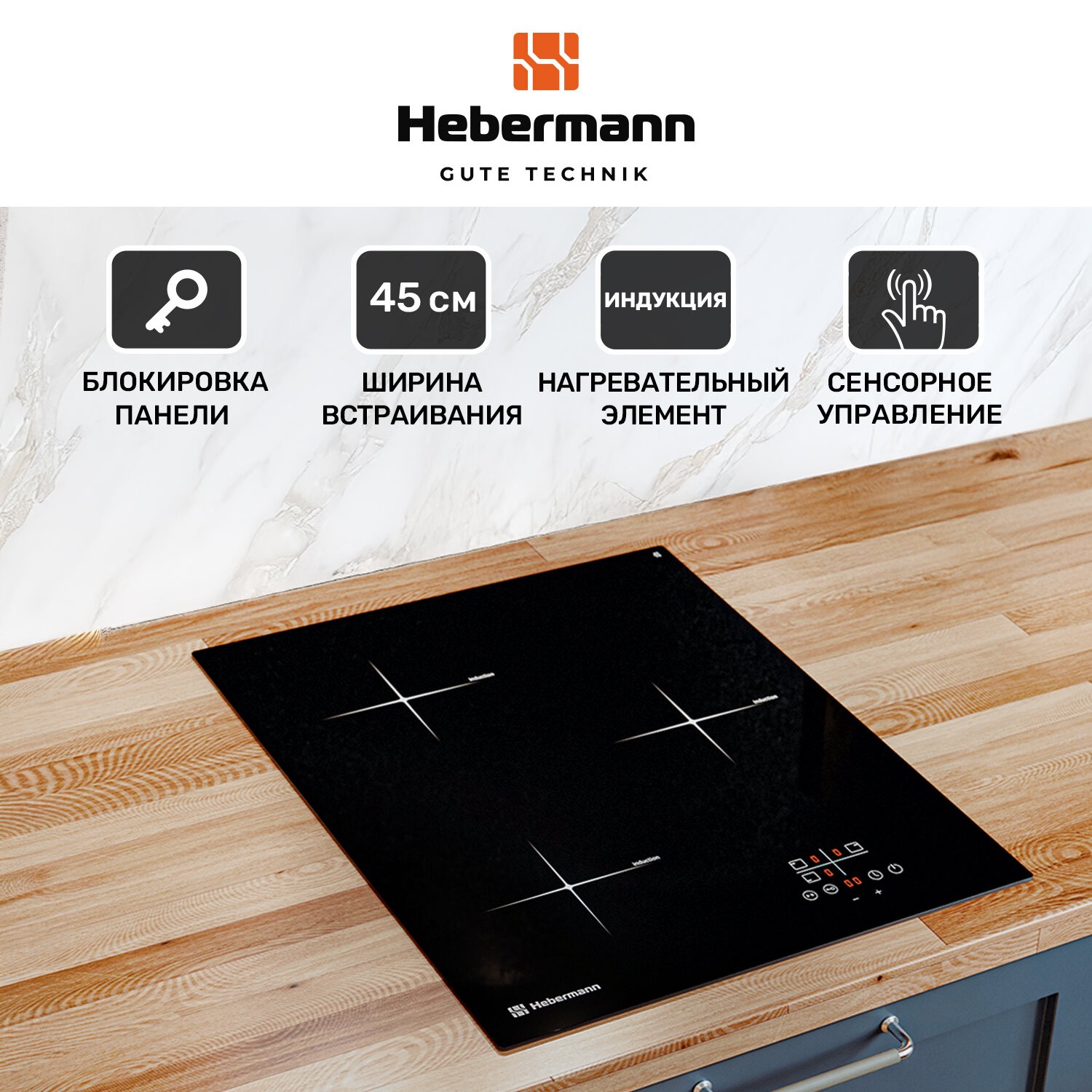 Индукционная варочная поверхность, встраиваемая, Hebermann черная HBKI 4530.1 BL, трехконфорочная, сенсорное управление.: сравнение цен, характеристики, фото, актуальное наличие и цены.