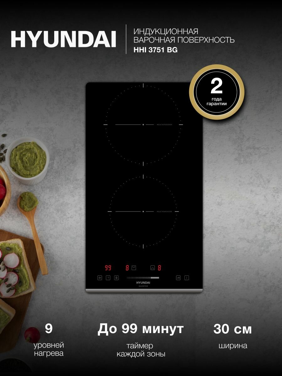 Индукционная варочная поверхность Hyundai HHI 3751 BG, Слайдерное управление, функция Автозакипания, 9 уровней мощности: сравнение цен, характеристики, фото, актуальное наличие и цены.