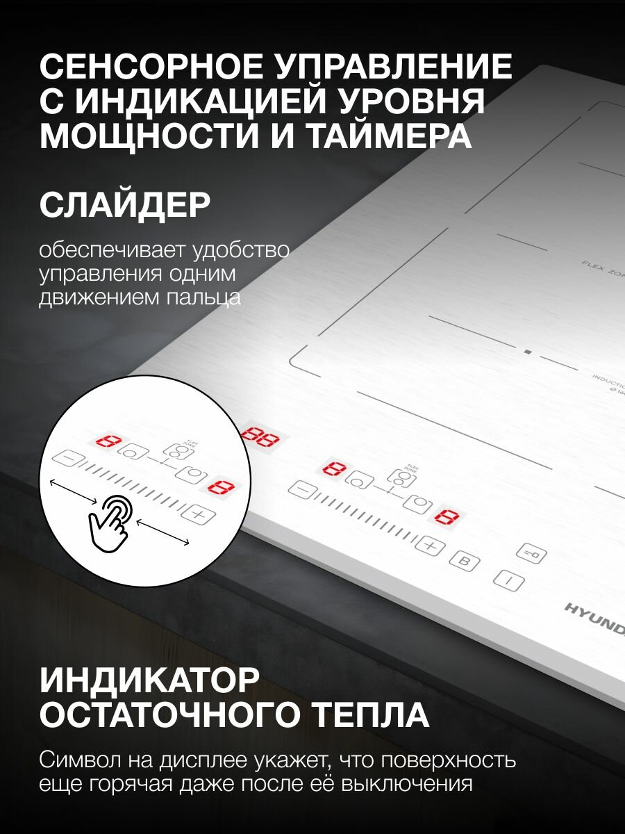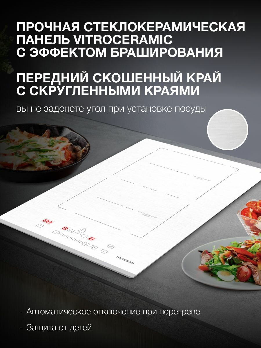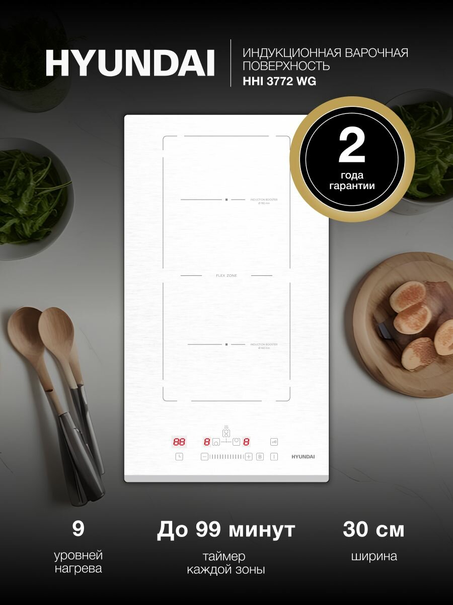 Купить Индукционная варочная поверхность Hyundai HHI 3772 WG белый, независимая установка, индукционных конфорок 2 с доставкой по всей России.