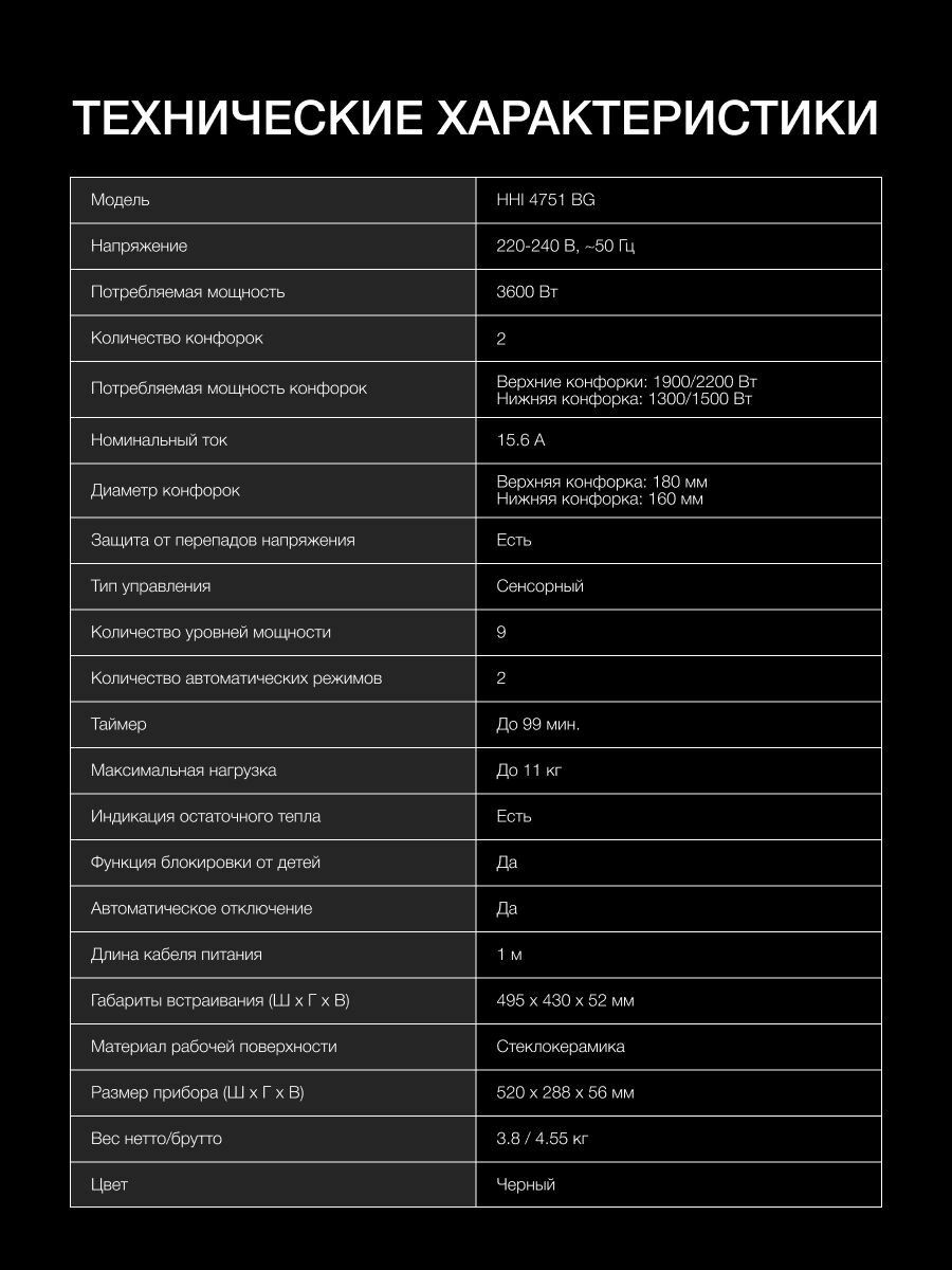Индукционная варочная панель Hyundai HHI 4751 BG, черный: сравнение цен, характеристики, фото, актуальное наличие и цены.