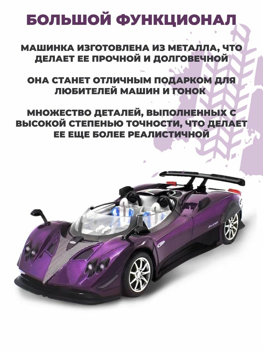 Купить Инерционная металлическая машинка 1:24, Pagani со звуком и светом, фиолетовая с доставкой по всей России.