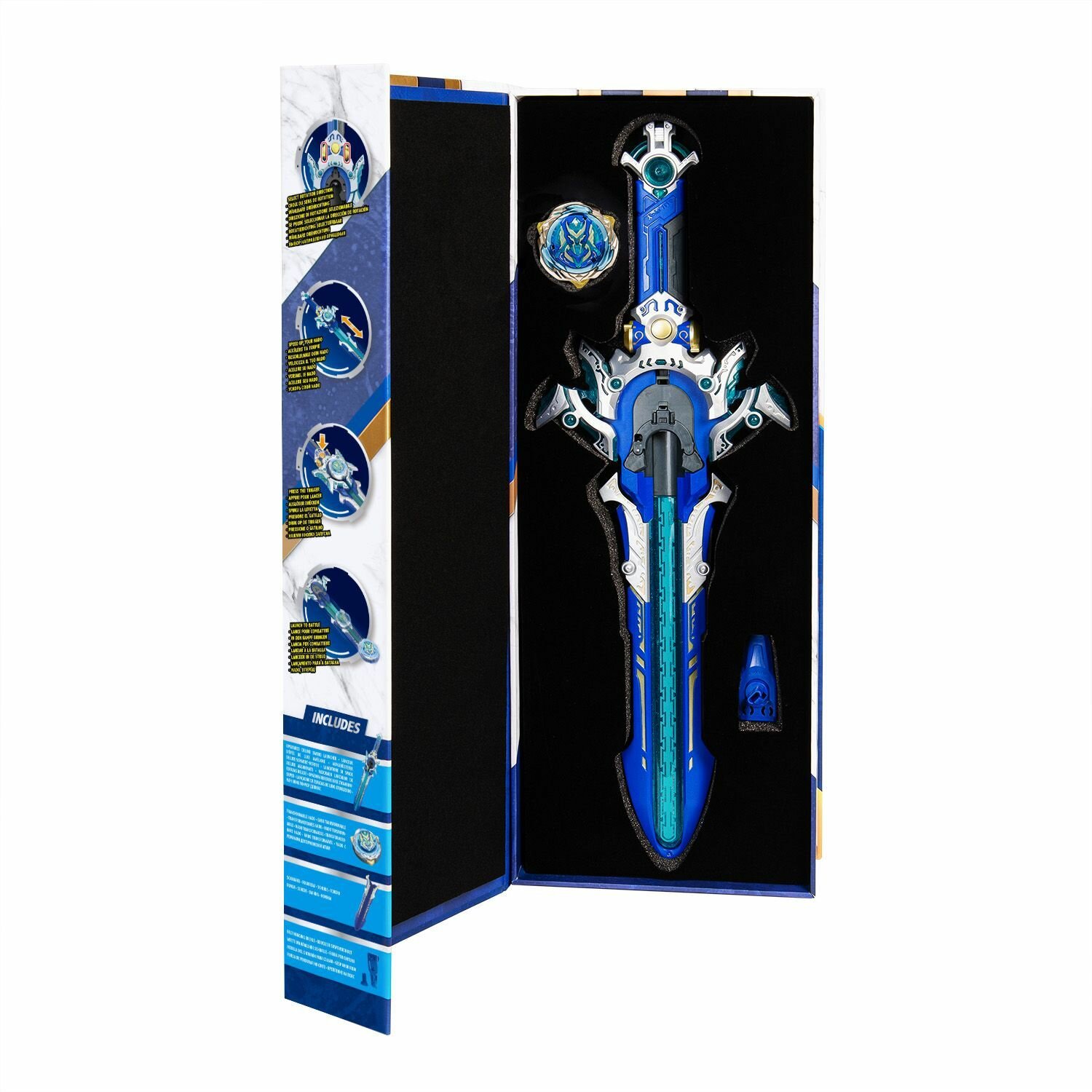 Серия Эпик Лончер Делюкс - легенда Инфинити Надо! Коллекционные мечи длиной 50 см! Порази соперника, активируя световые эффекты на мече с помощью кнопки на рукоятке! Запускай волчок 2-мя способами: мечом в ножнах или вынув меч для эпичного запуска! Выбирай направление вращения волчка с помощью рычагов на рукоятке. Используй крепление из набора, чтобы повесить меч на пояс.