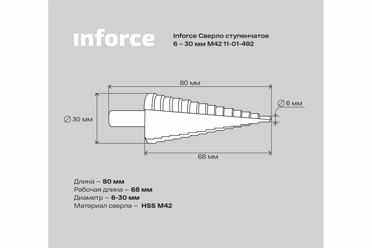 Купить Сверло ступенчатое (6-30 мм; M42) Inforce 11-01-492 с доставкой по всей России. Сверло ступенчатое (6-30 мм; M42) Inforce 11-01-492: сравнение цен, характеристики, фото, актуальное наличие и цены.