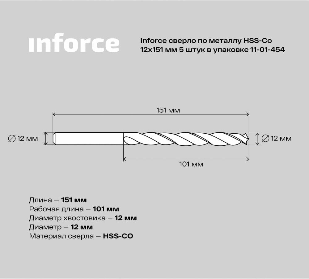 Купить Inforce сверло по металлу HSS-Co 12×151мм 5 штук в упаковке 11-01-454 . с доставкой по всей России. Inforce сверло по металлу HSS-Co 12×151мм 5 штук в упаковке 11-01-454 .: сравнение цен, характеристики, фото, актуальное наличие и цены.