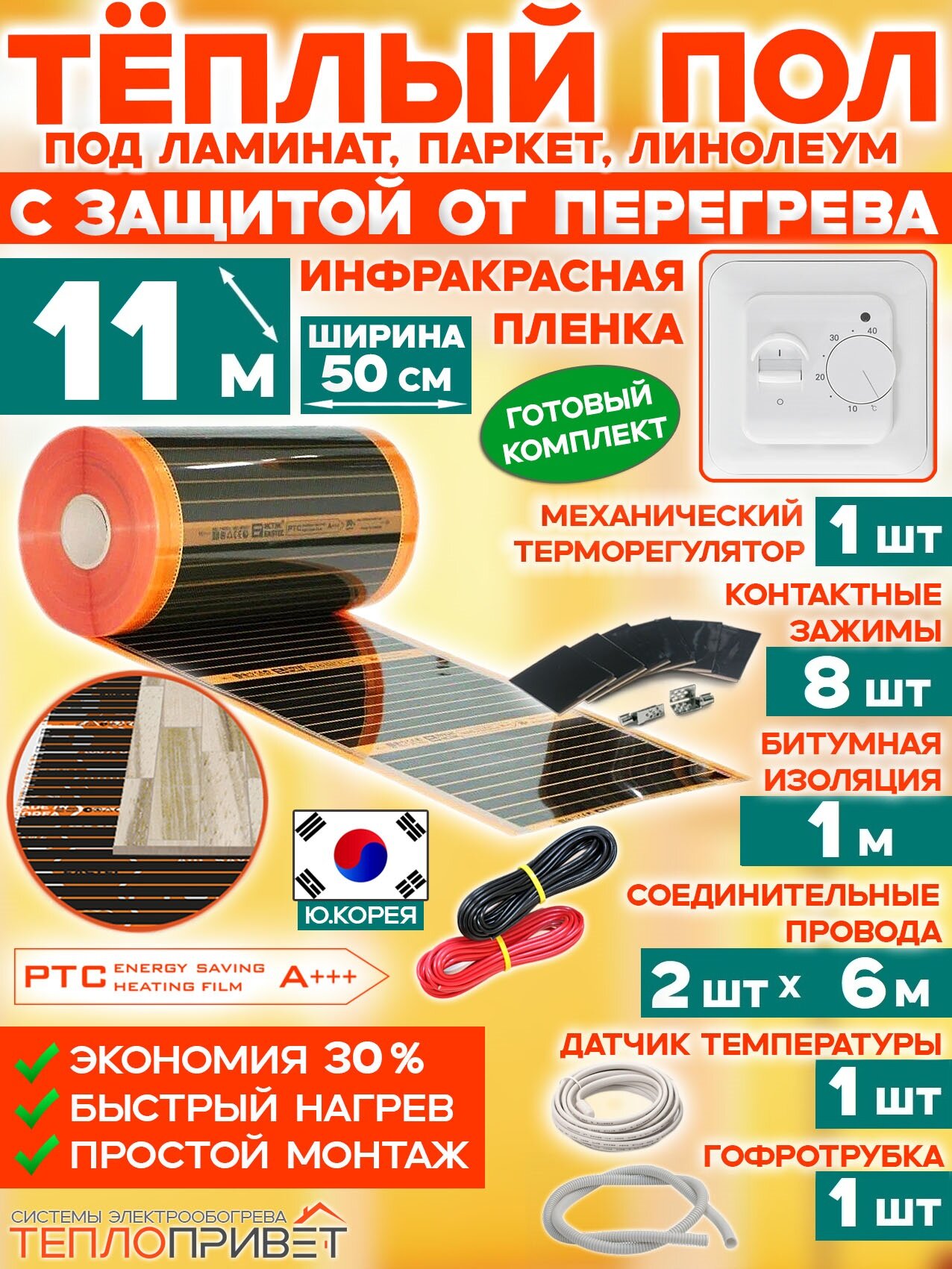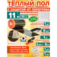 Инфракрасный теплый пол Eastec PTC 11 м х 50 см 1210 Вт комплект саморегулирующий TLS-50-11 + механический регулятор
