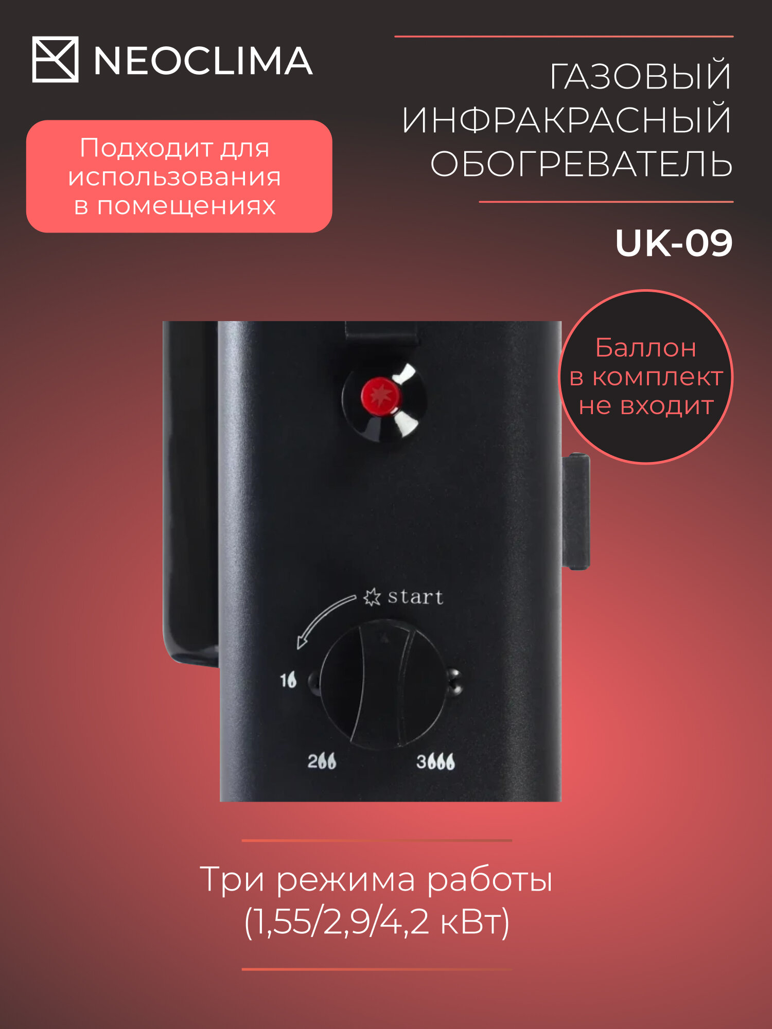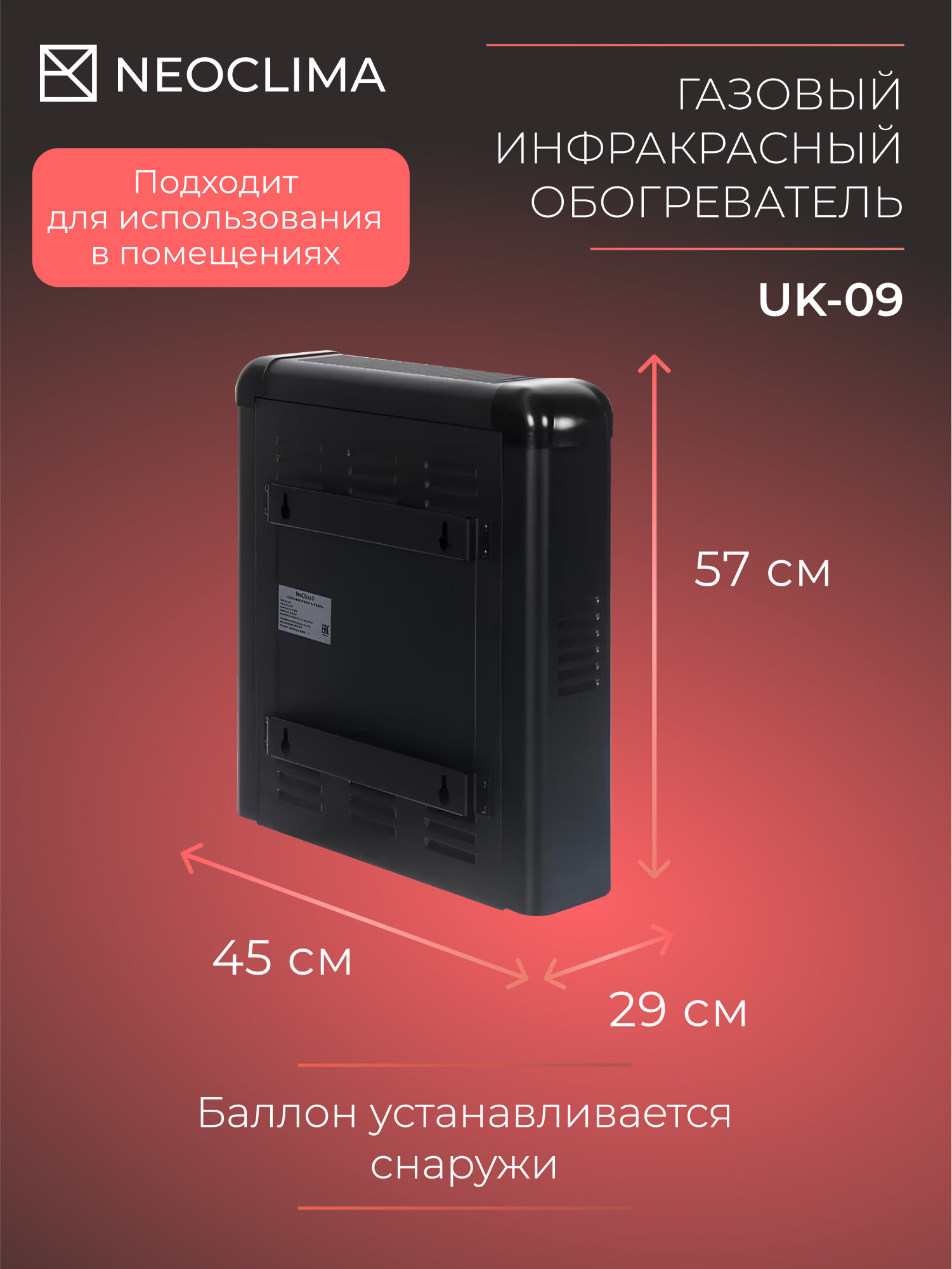 Инфракрасный напольный газовый обогреватель Neoclima UK-09, черный, 4200 Вт: сравнение цен, характеристики, фото, актуальное наличие и цены.