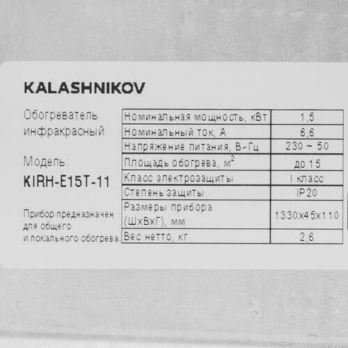 Купить Инфракрасный обогреватель Kalashnikov KIRH-E15T-11 с доставкой по всей России. Инфракрасный обогреватель Kalashnikov KIRH-E15T-11: сравнение цен, характеристики, фото, актуальное наличие и цены.