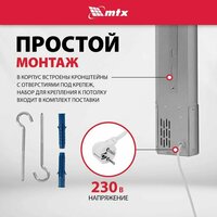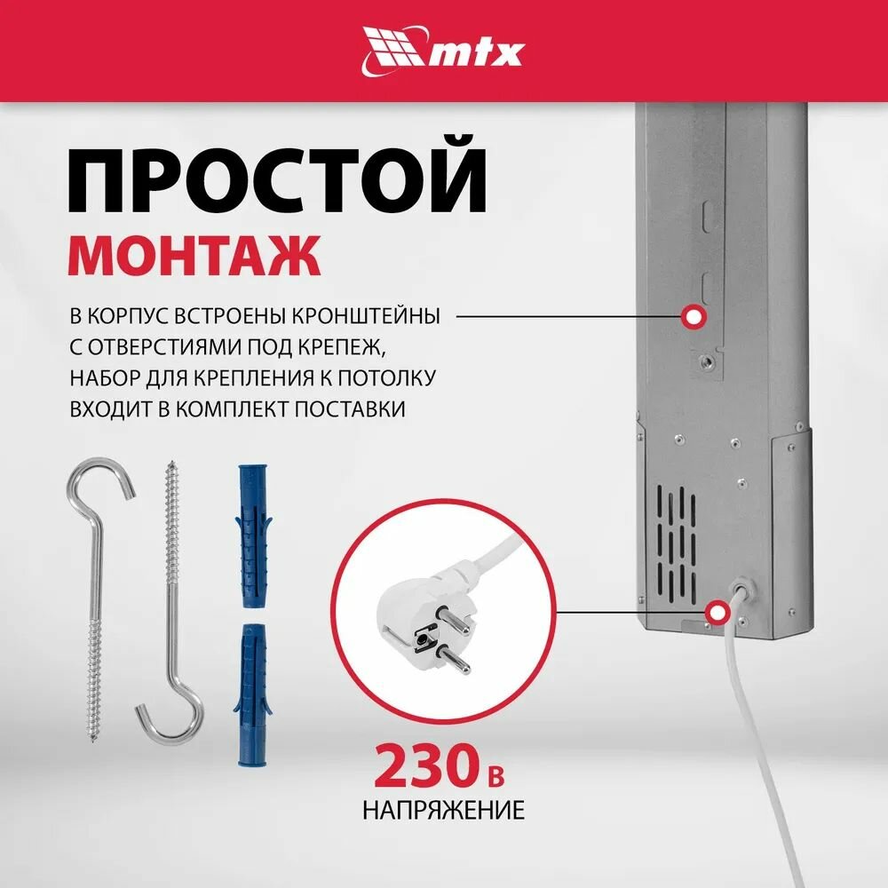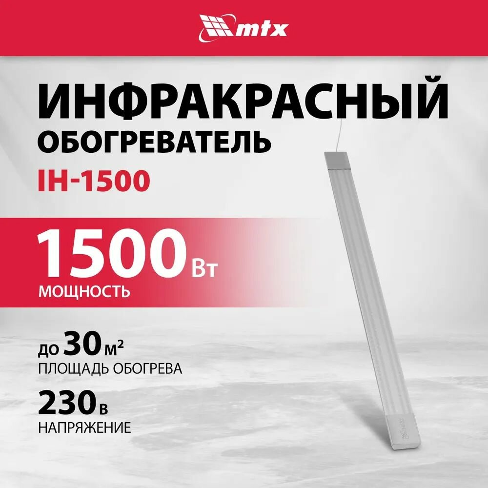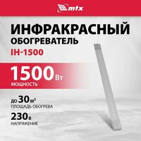 Купить Инфракрасный обогреватель MTX, IH-1500, 1500 Вт мощность и 26 м2 максимальная площадь обогрева, потолочная установка, встроенные крепежные кронштейны, для дома, 98702 с доставкой по всей России.