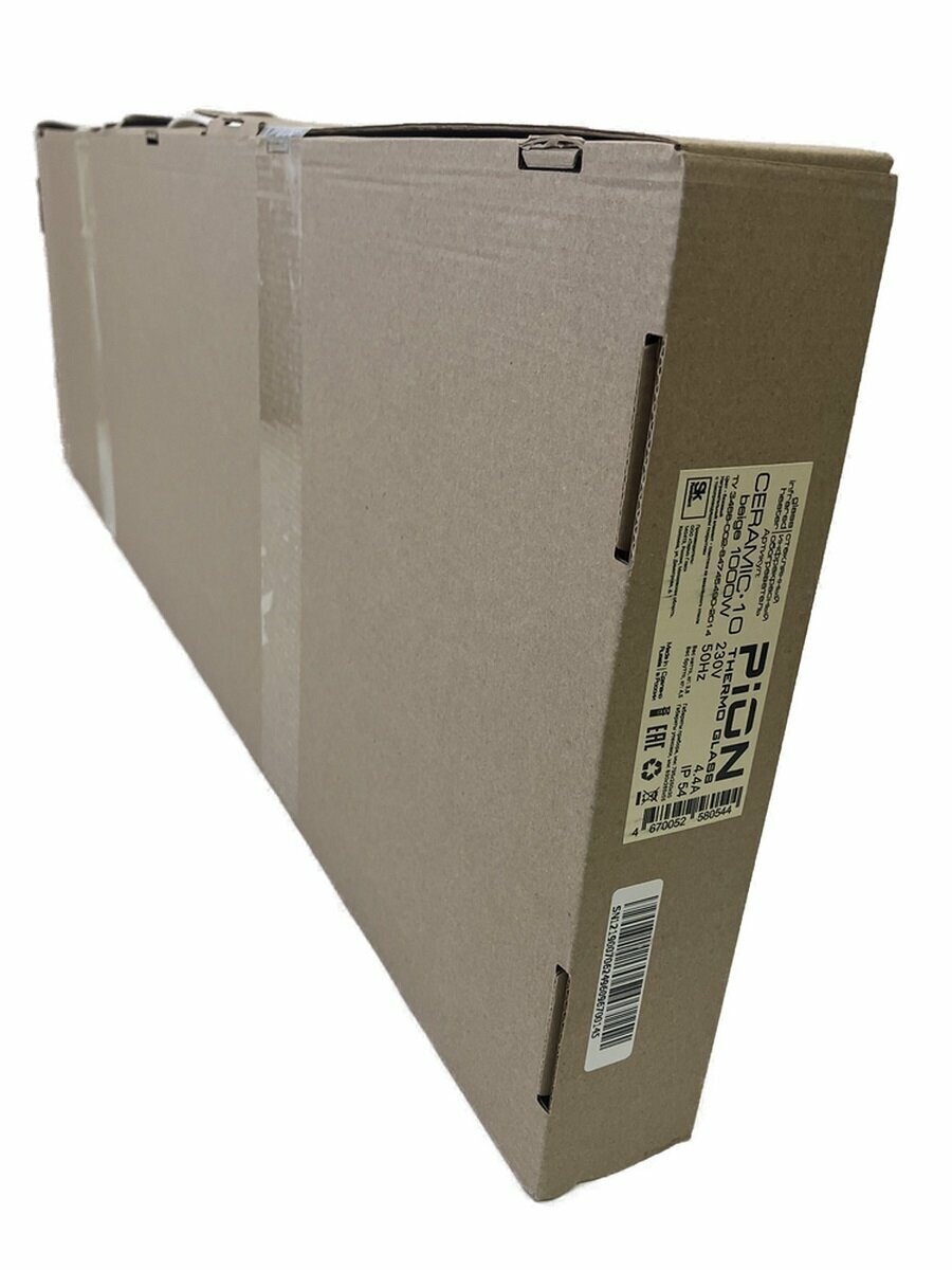 | Подробная комплектация | инфракрасный обогреватель, тросовый подвес 2шт, клеммная колодка 2шт, дюбель 2шт, саморез 2шт, прижимные кольца 6шт, монтажный кронштейн с планкой, руководство по эксплуатации и гарантийный талон, упаковка |