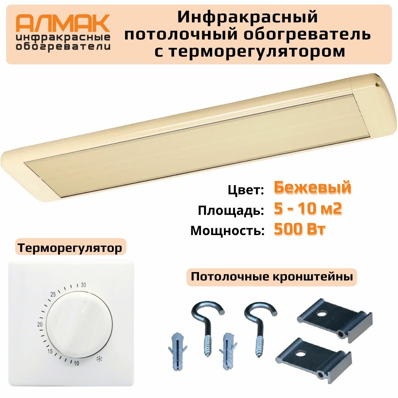 Купить Инфракрасный обогреватель потолочный с терморегулятором Алмак ИК-5 Бежевый 500 Вт с доставкой по всей России.