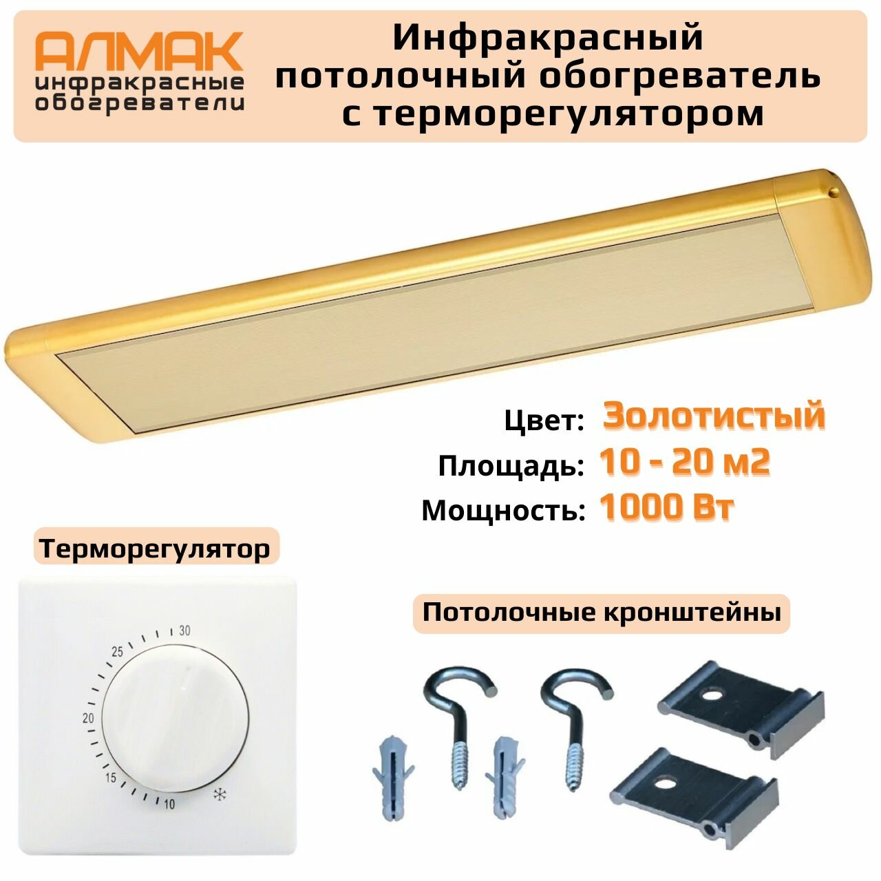 Купить Инфракрасный потолочный обогреватель с терморегулятором Алмак ИК-11 Золотой 1000 Вт с доставкой по всей России.