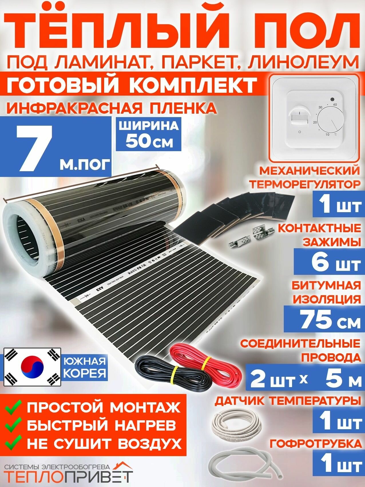 Купить Инфракрасный теплый пол 7 м х 50 см 770 Вт комплект TL-50-7 + механический терморегулятор с доставкой по всей России. Инфракрасный теплый пол 7 м х 50 см 770 Вт комплект TL-50-7 + механический терморегулятор: сравнение цен, характеристики, фото, актуальное наличие и цены.