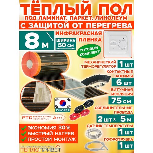Инфракрасный теплый пол Eastec PTC 8 м х 50 см 880 Вт комплект саморегулирующий TLS-50-8 + механический регулятор